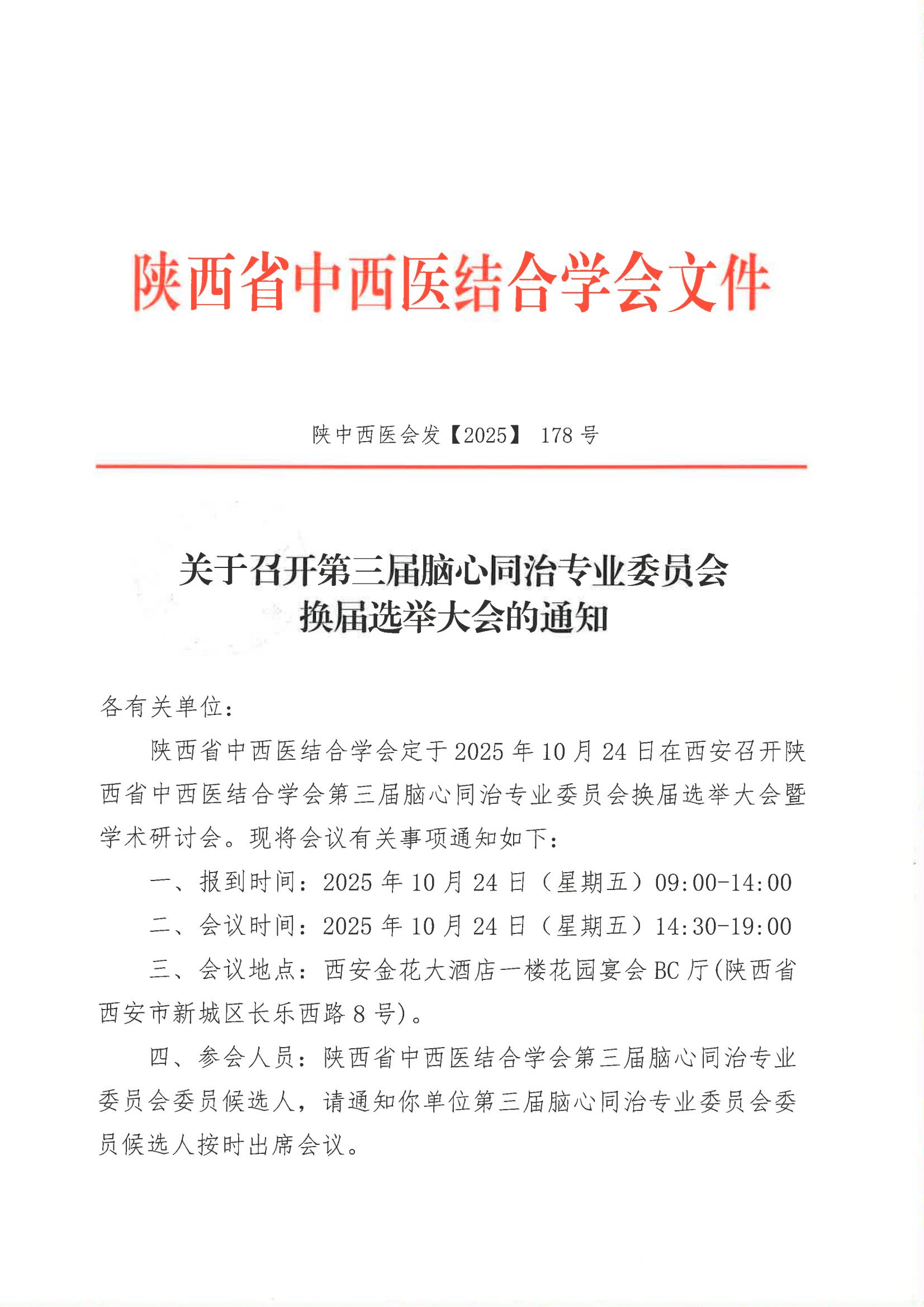 关于召开第三届脑心同治专业委员会换届选举大会的通知