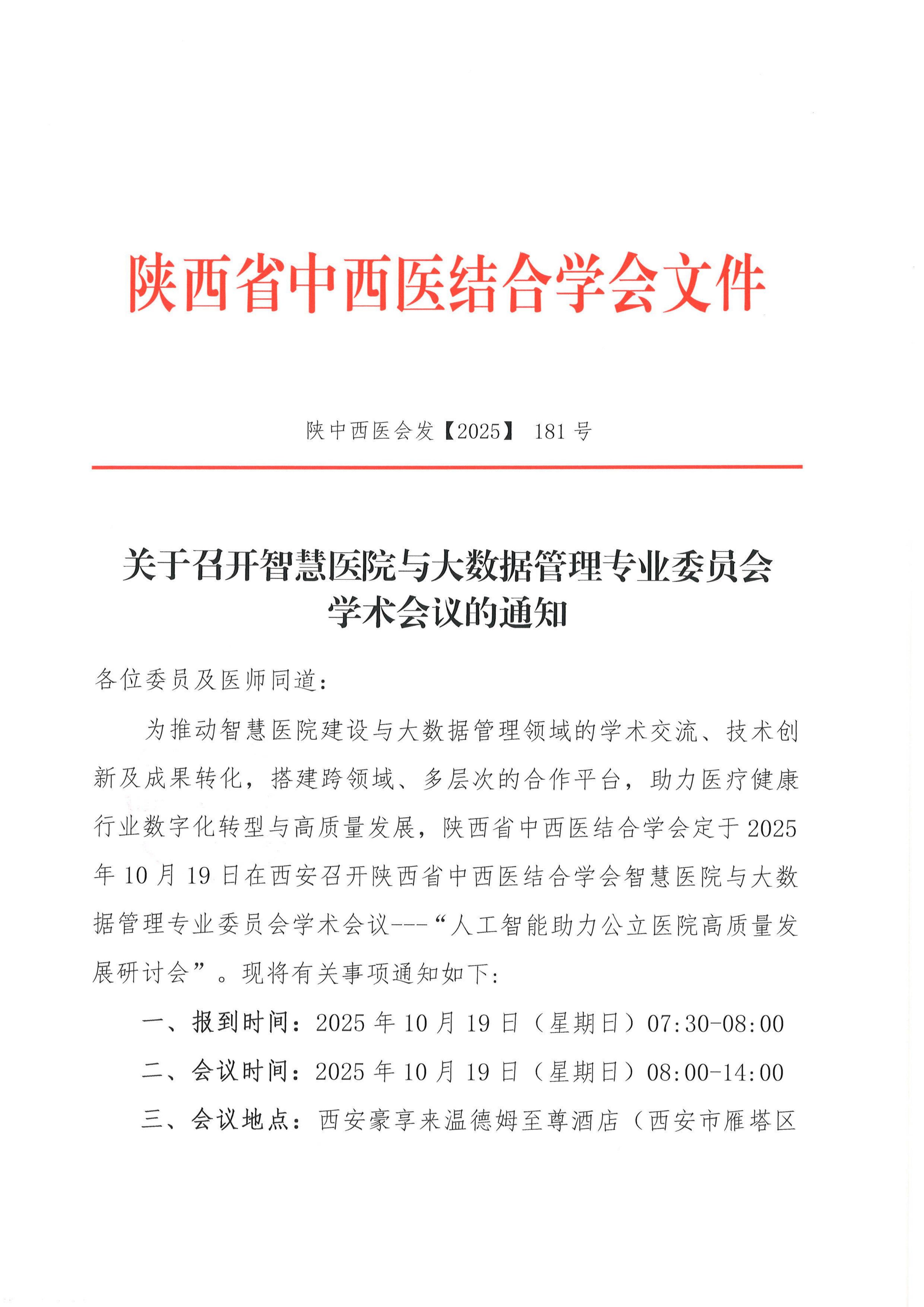 关于召开智慧医院与大数据管理专业委员会学术会议的通知