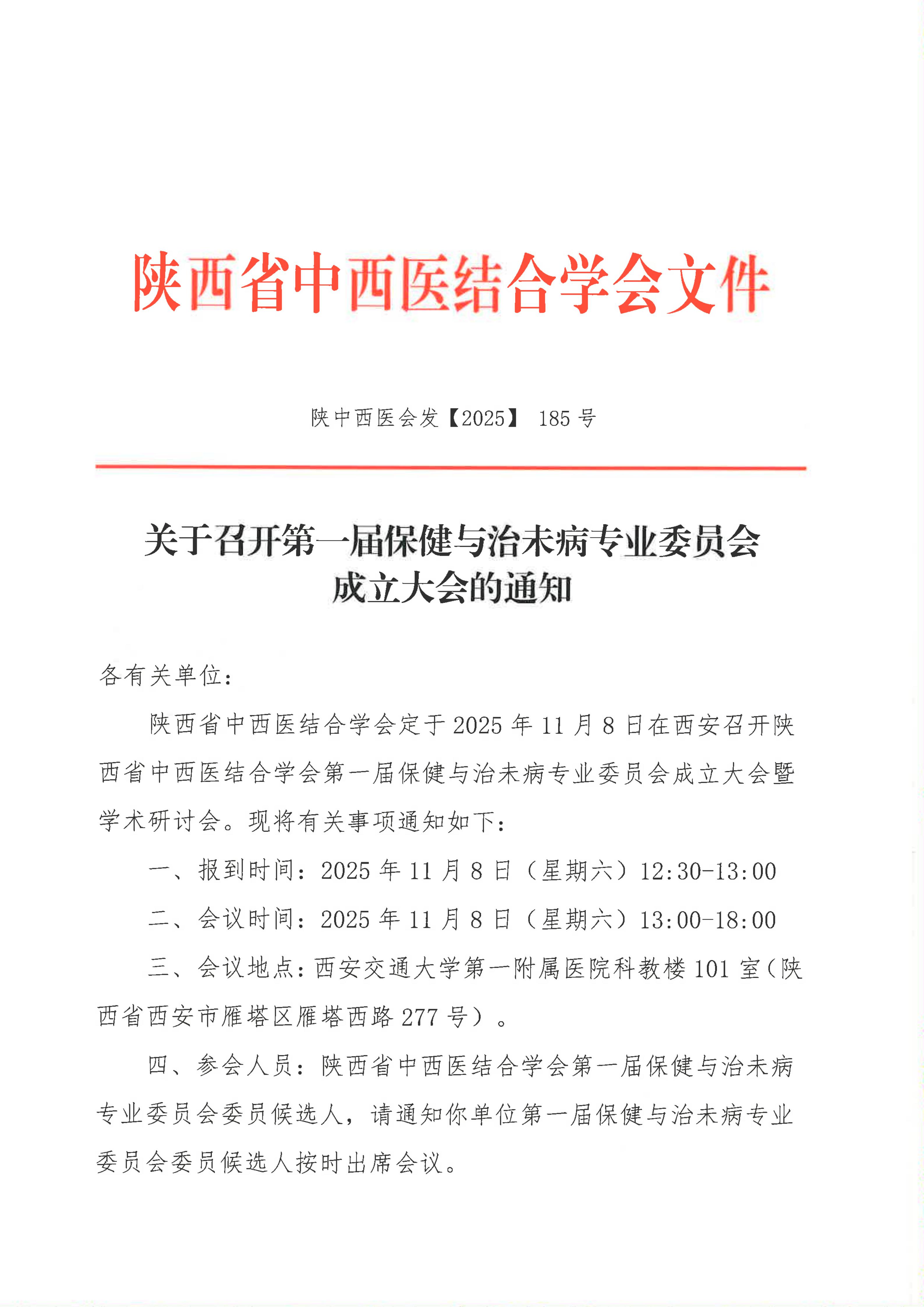 关于召开第一届保健与治未病专业委员会成立大会的通知