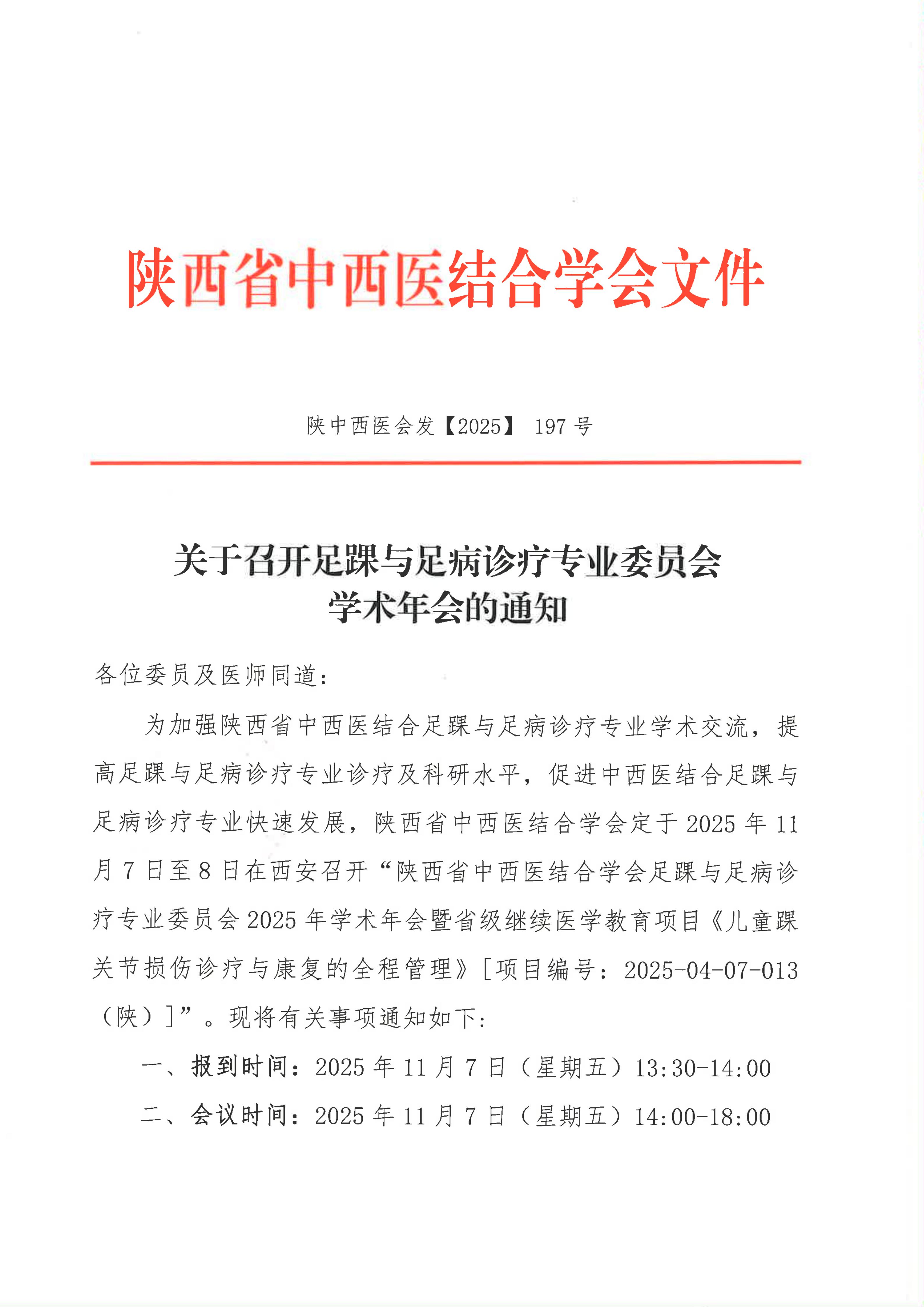 关于召开足踝与足病诊疗专业委员会学术年会的通知