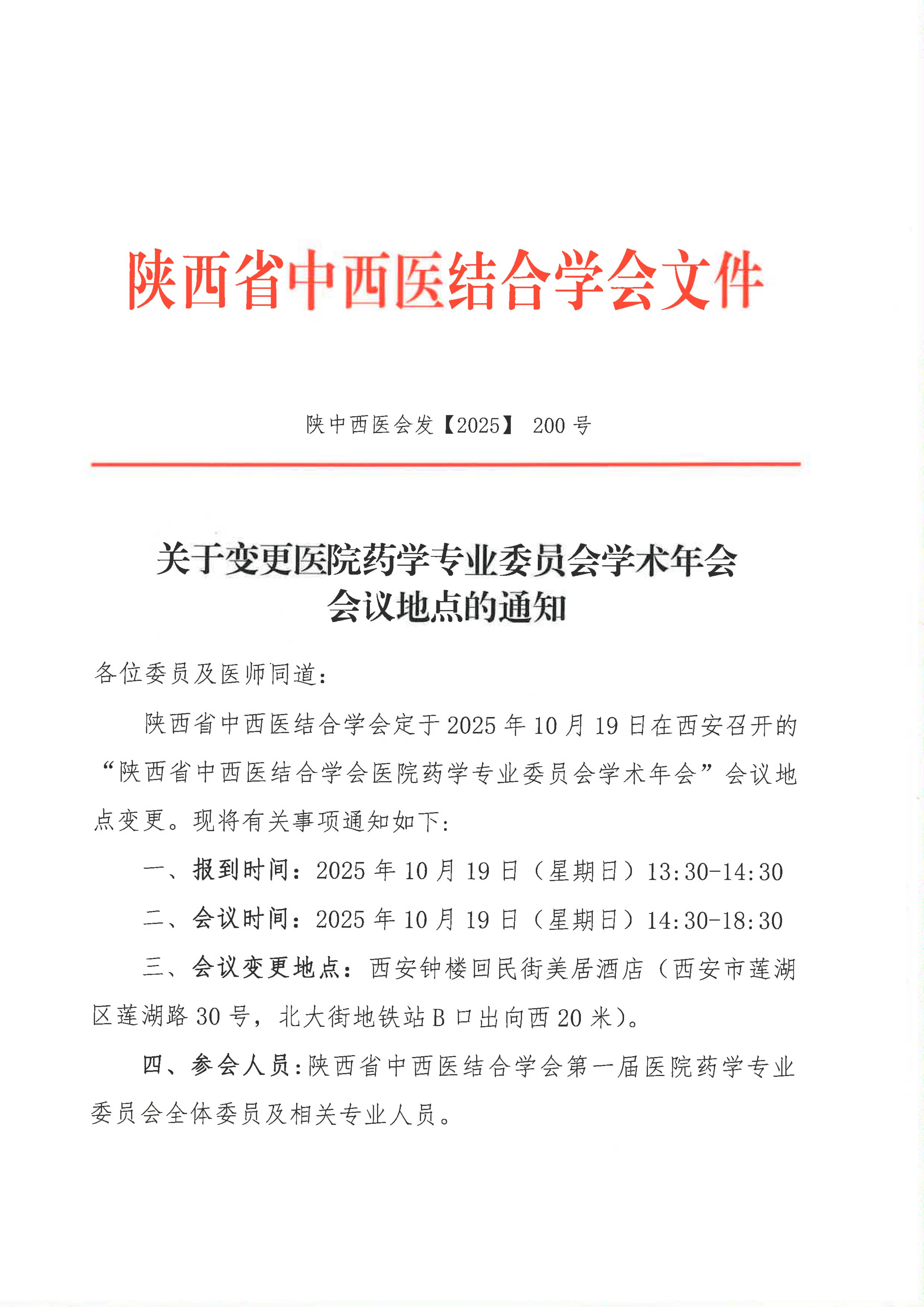 关于变更医院药学专业委员会学术年会会议地点的通知
