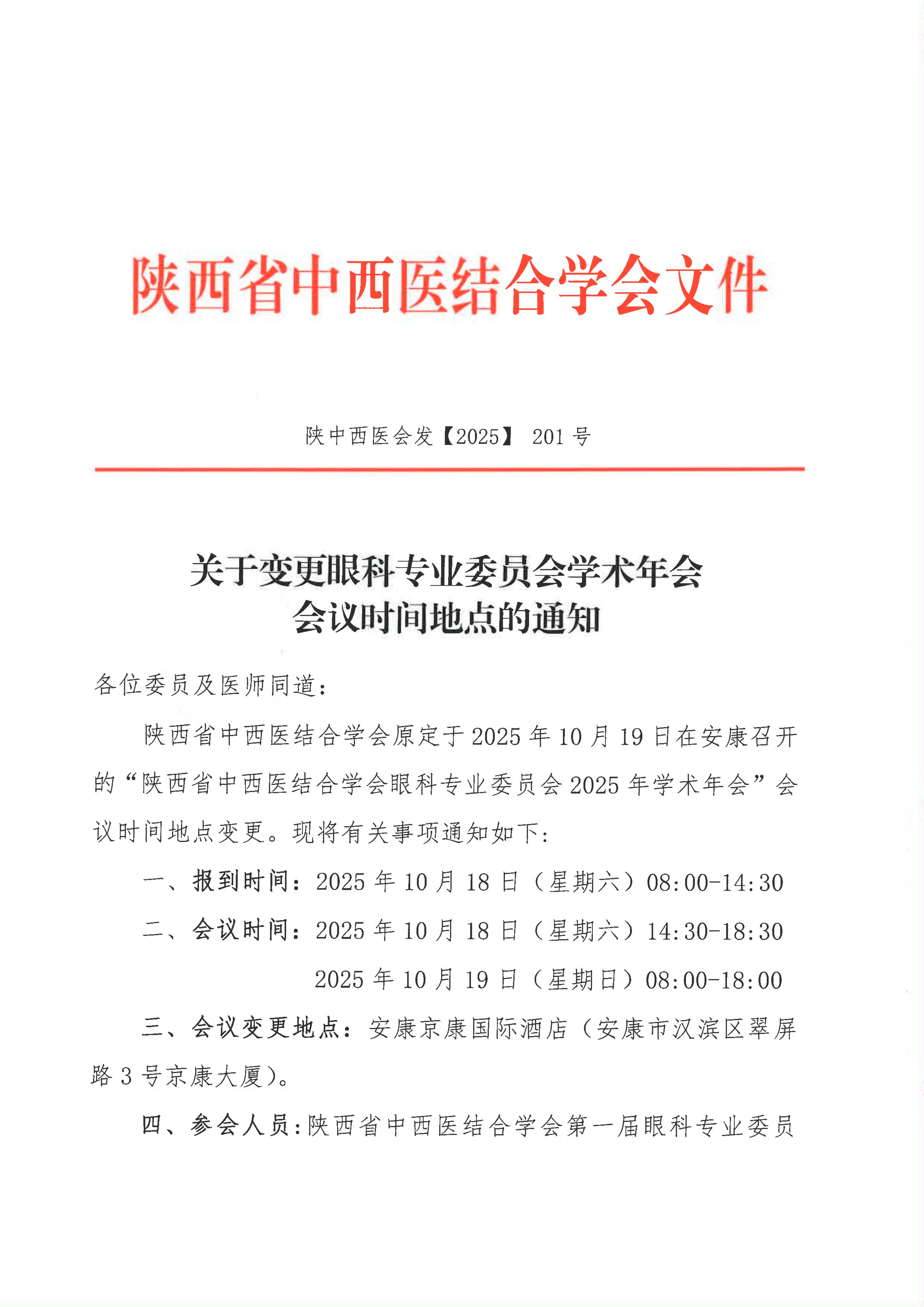 关于变更眼科专业委员会学术年会会议时间地点的通知