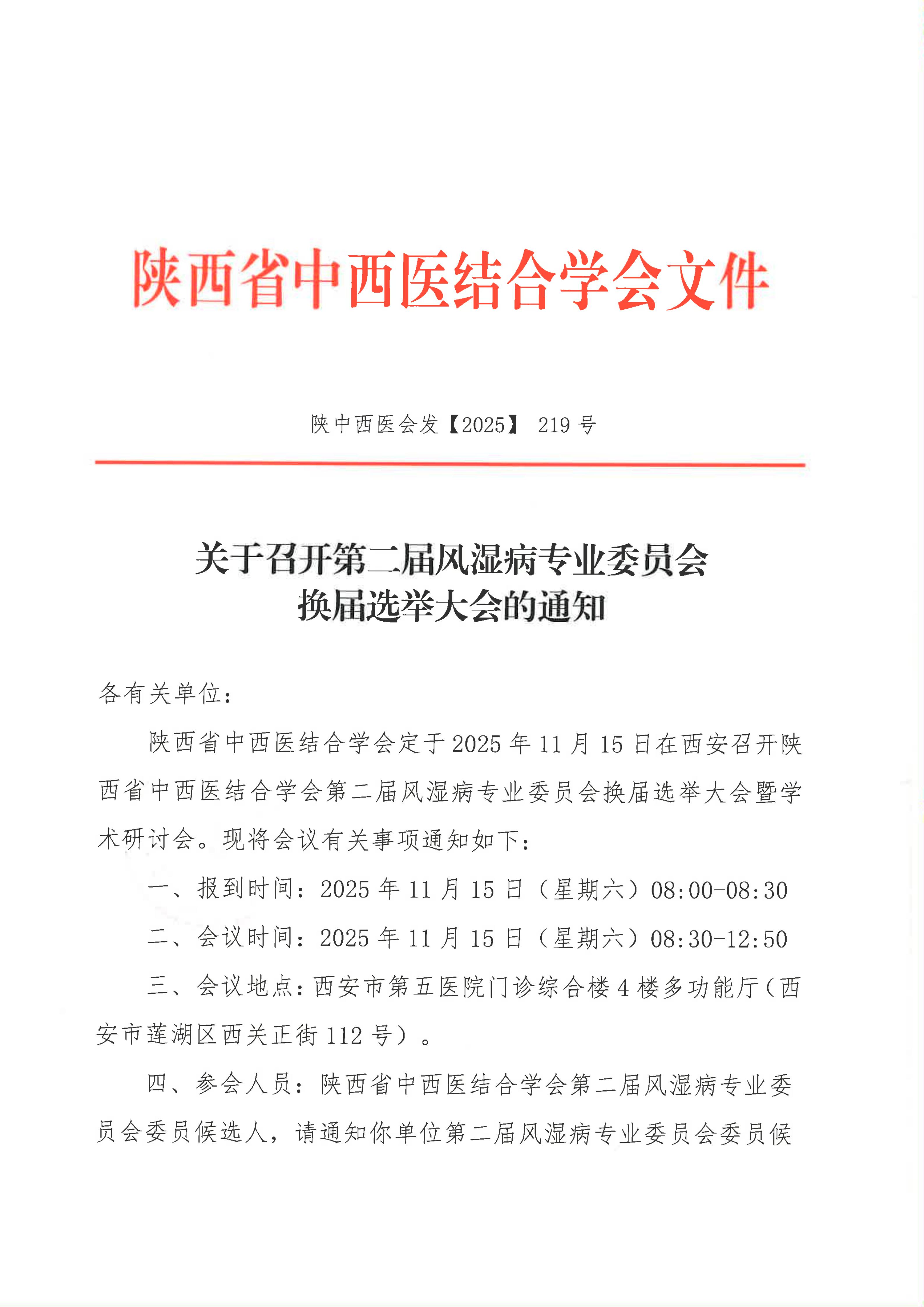 关于召开第二届风湿病专业委员会换届选举大会的通知