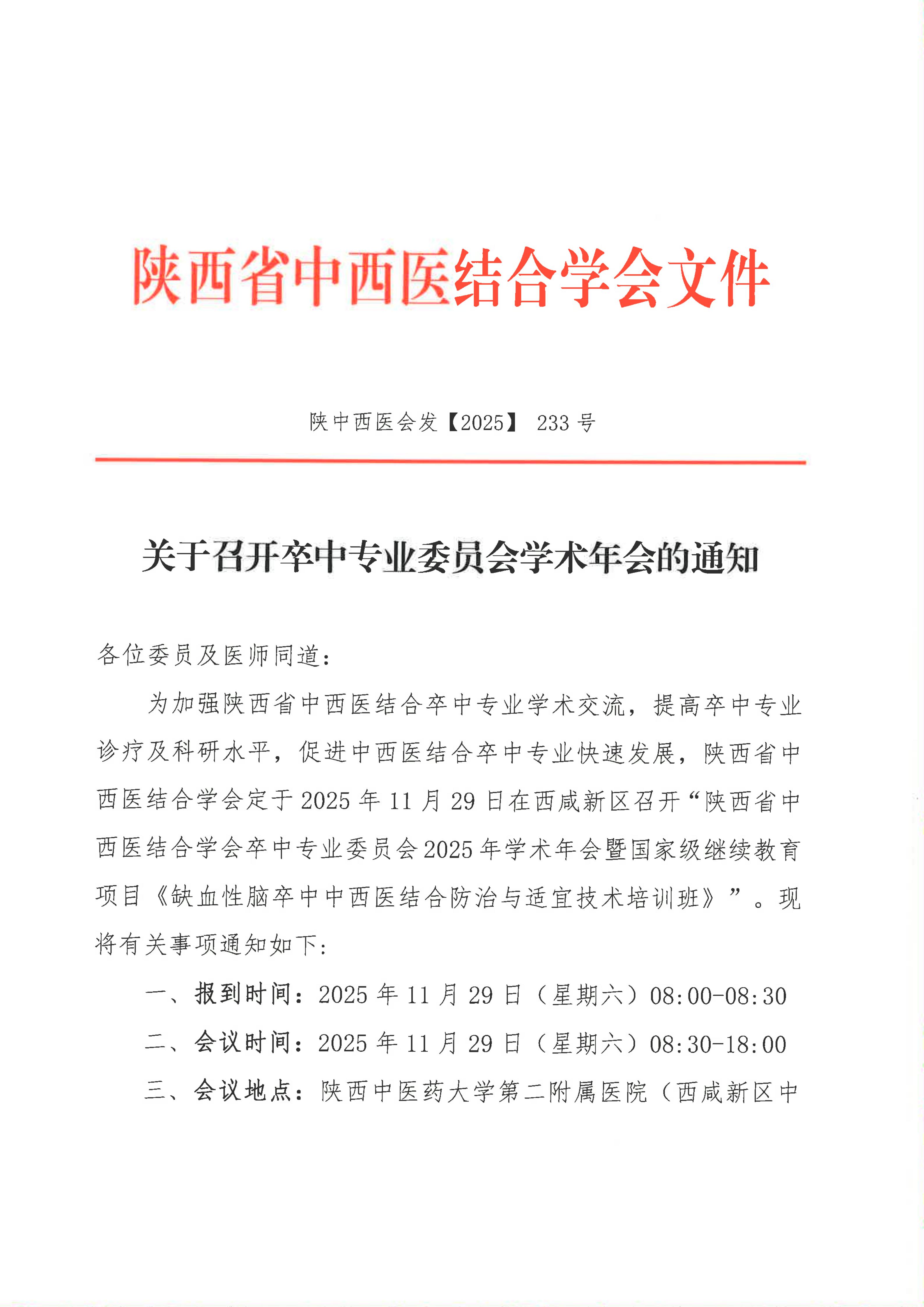 关于召开卒中专业委员会学术年会的通知