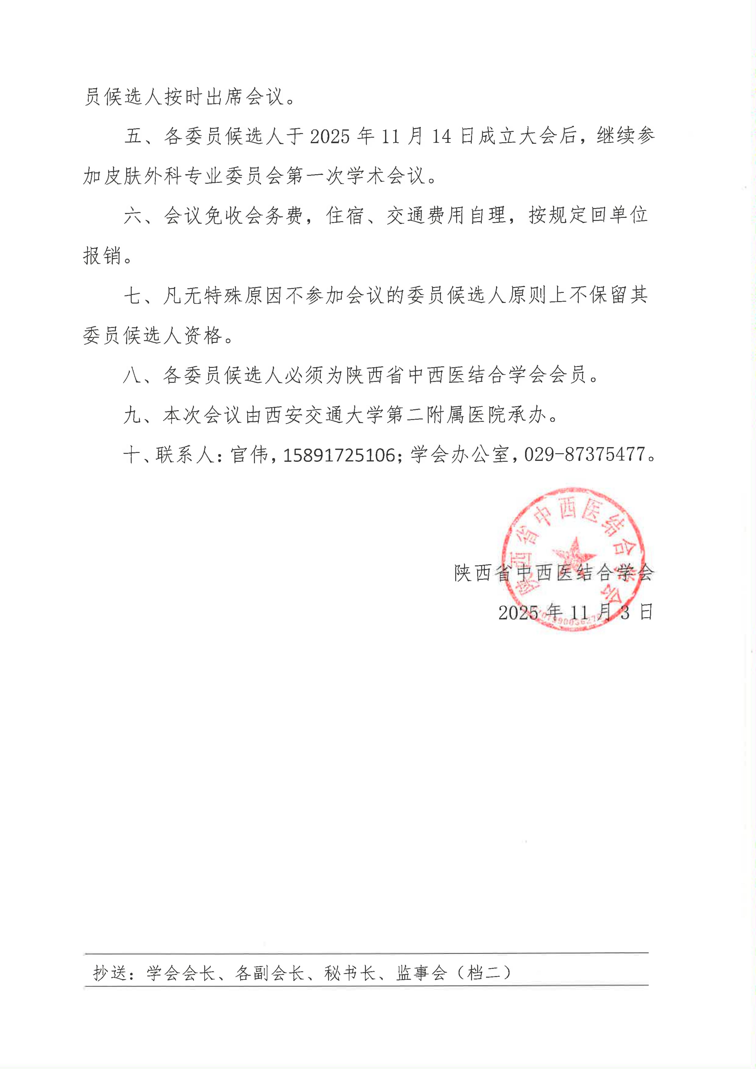 关于召开第一届皮肤外科专业委员会成立大会的通知