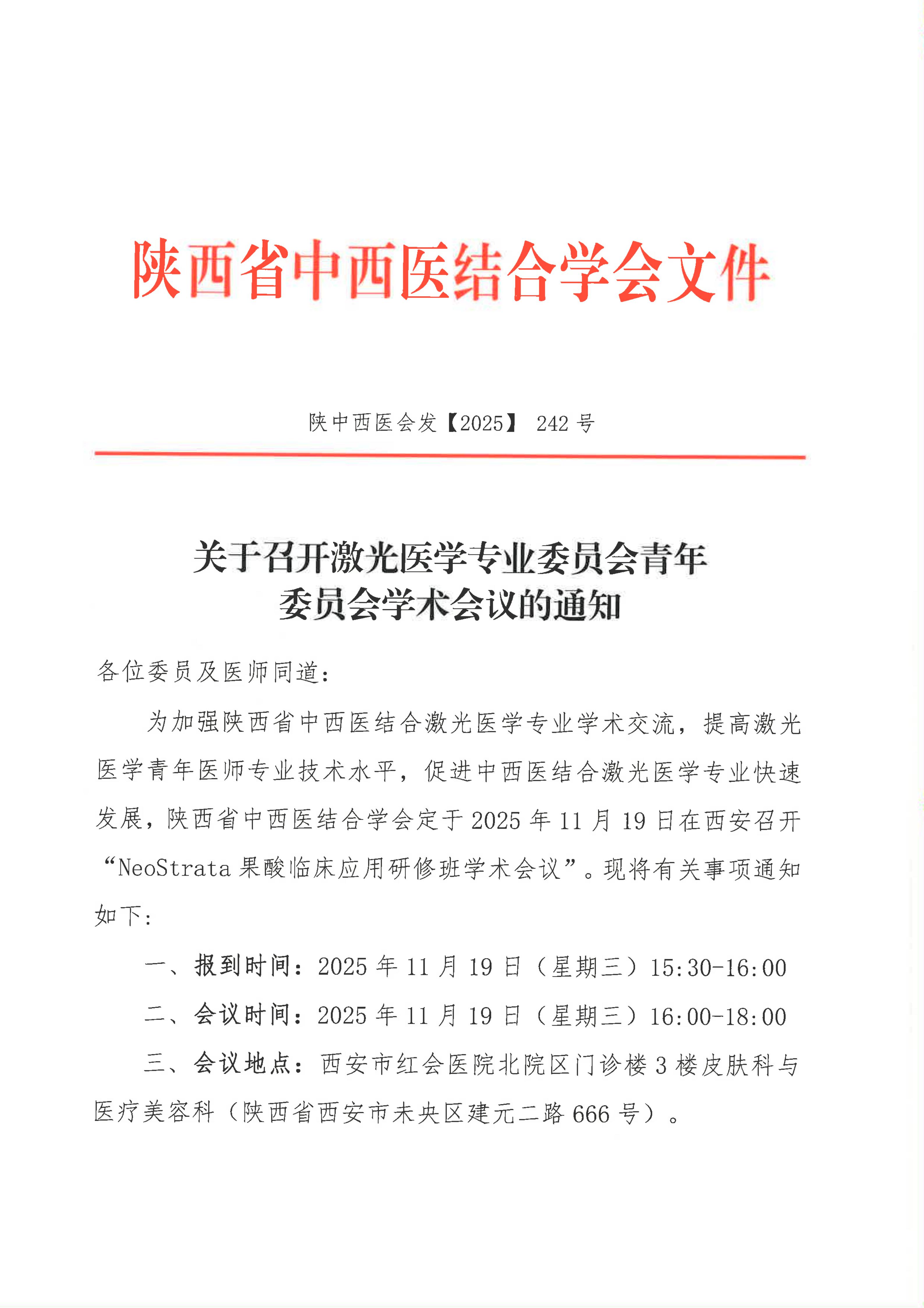 关于召开激光医学专业委员会青年委员会学术会议的通知