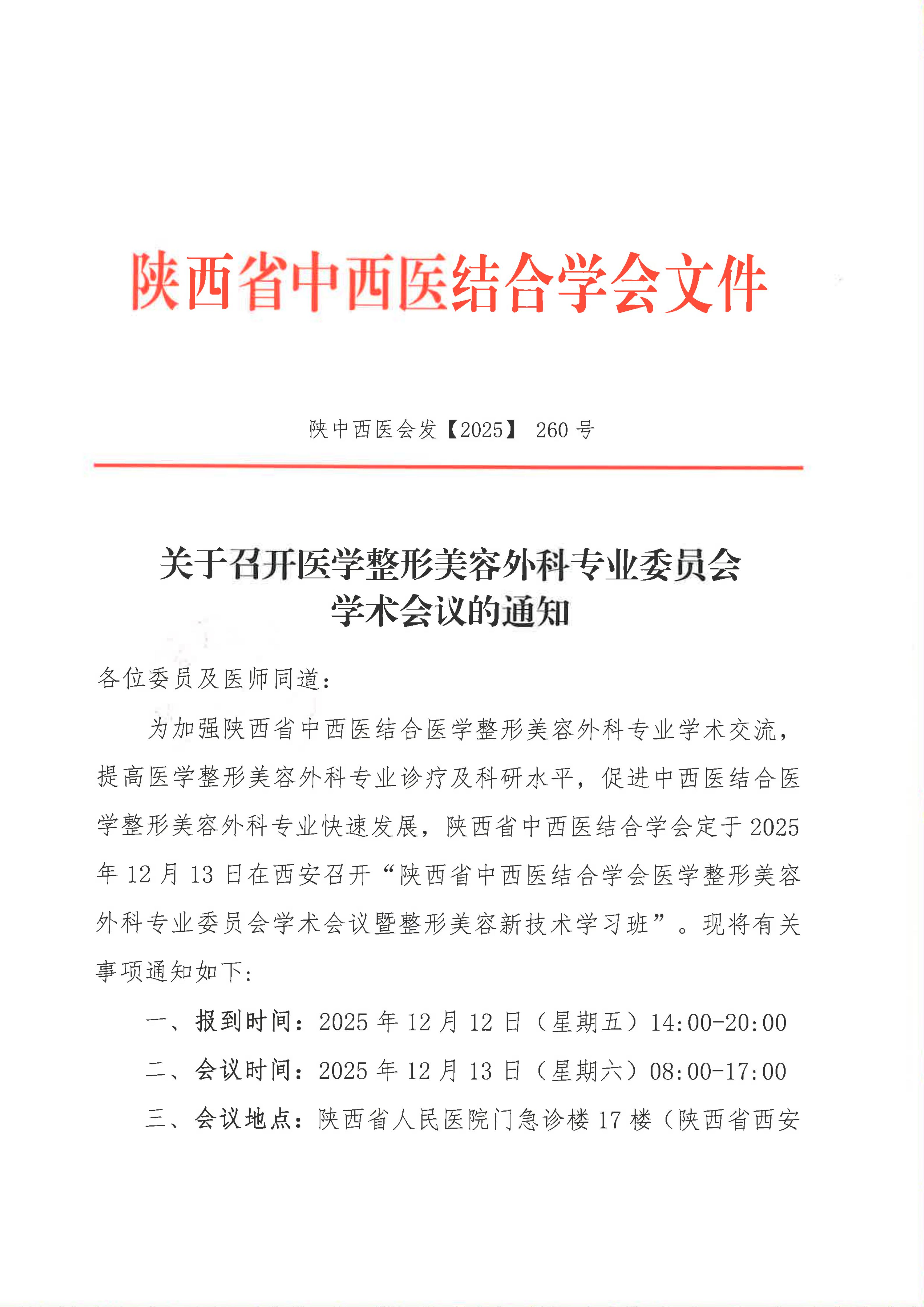 关于召开医学整形美容外科专业委员会学术会议的通知