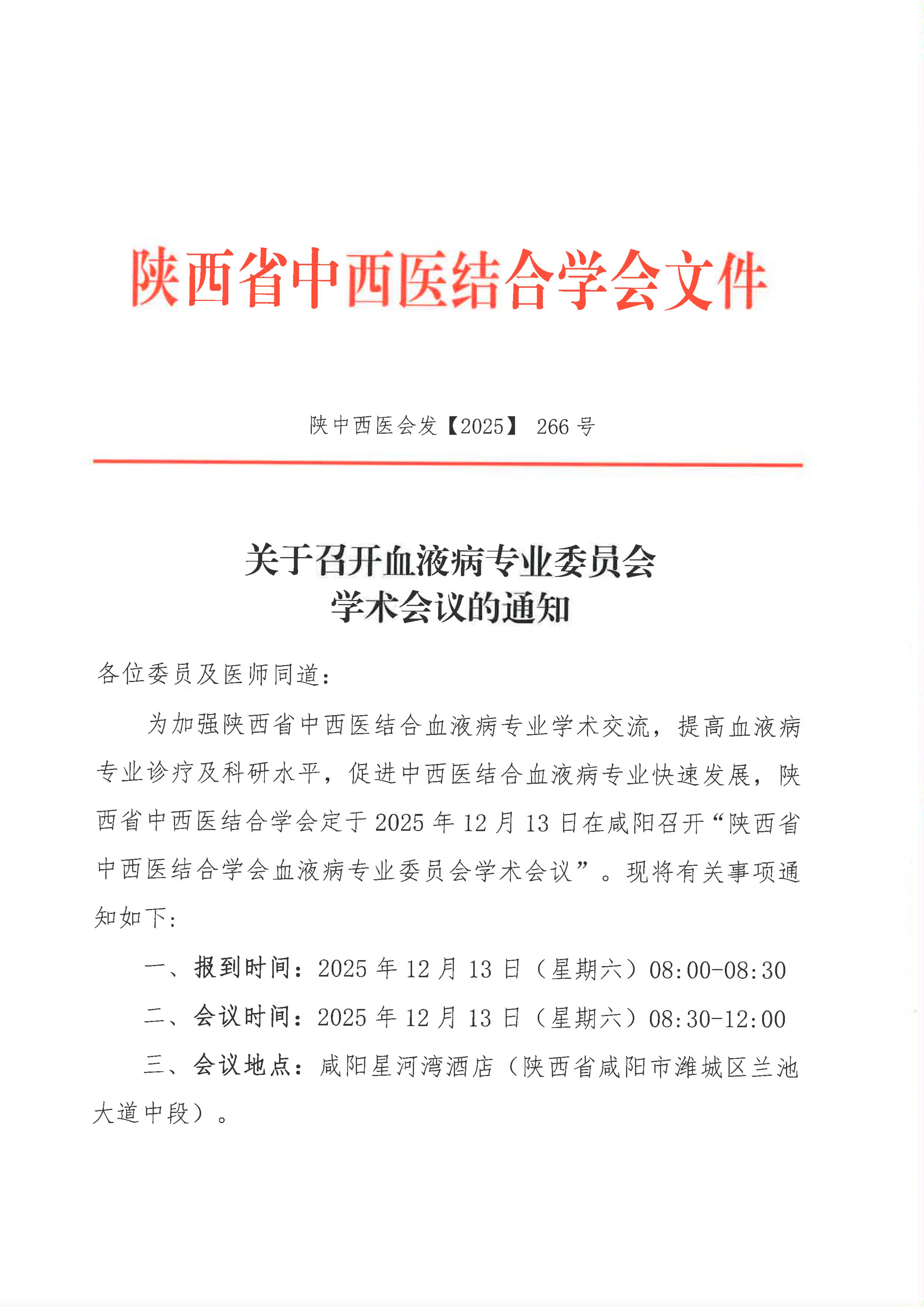 关于召开血液病专业委员会学术会议的通知