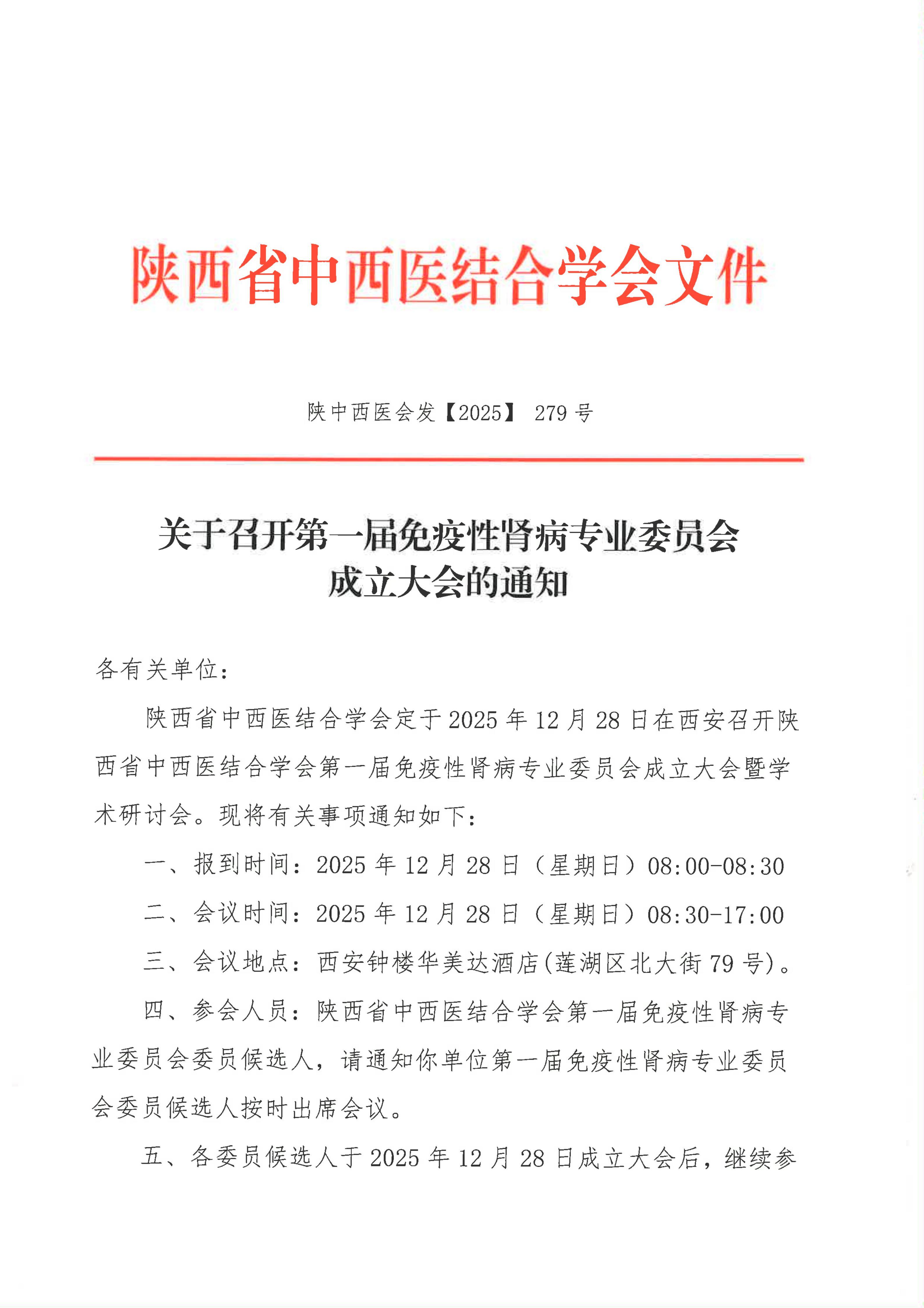 关于召开第一届免疫性肾病专业委员会成立大会的通知