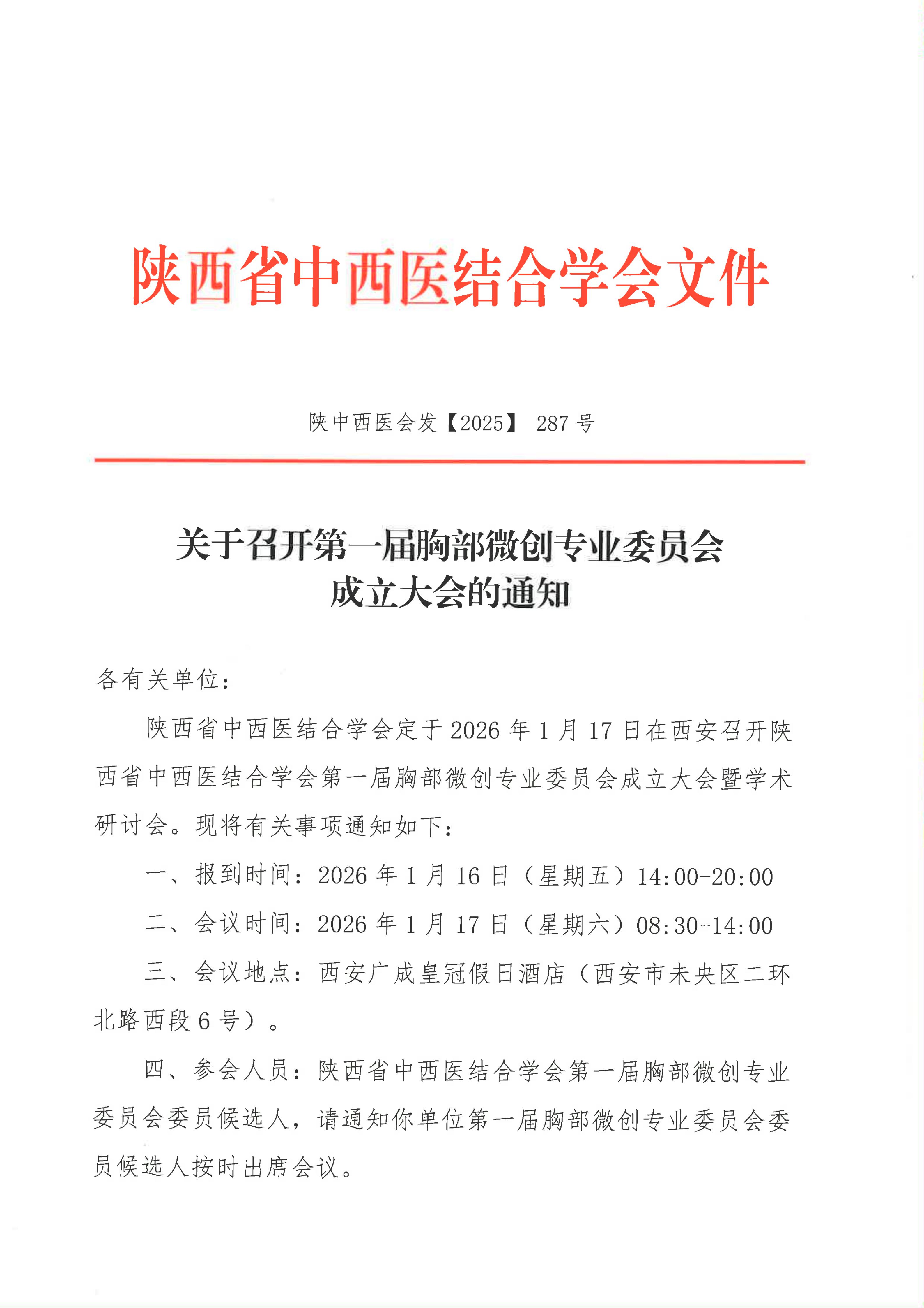 关于召开第一届胸部微创专业委员会成立大会的通知