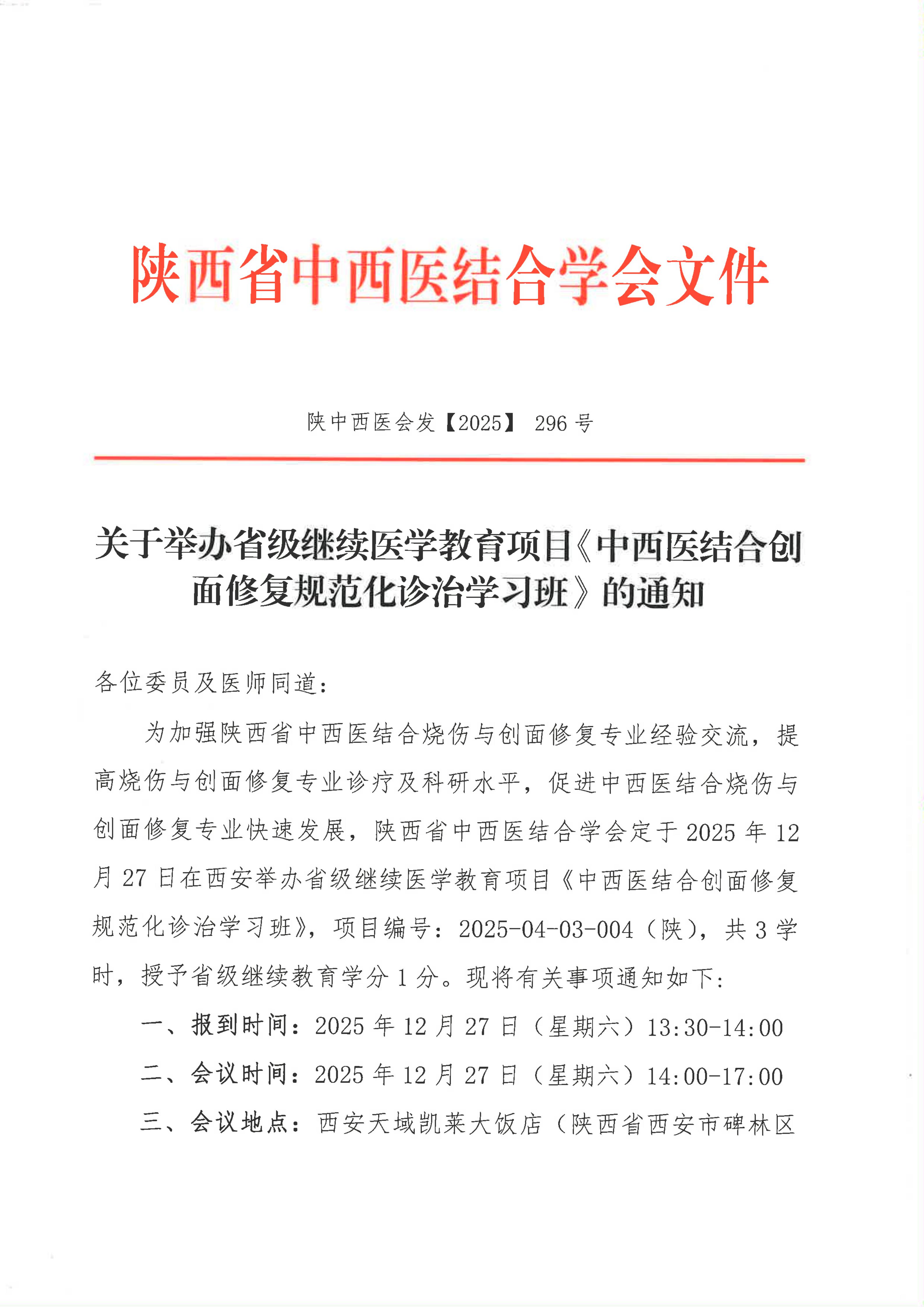 关于举办省级继续医学教育项目《中西医结合创面修复规范化诊治学习班》的通知