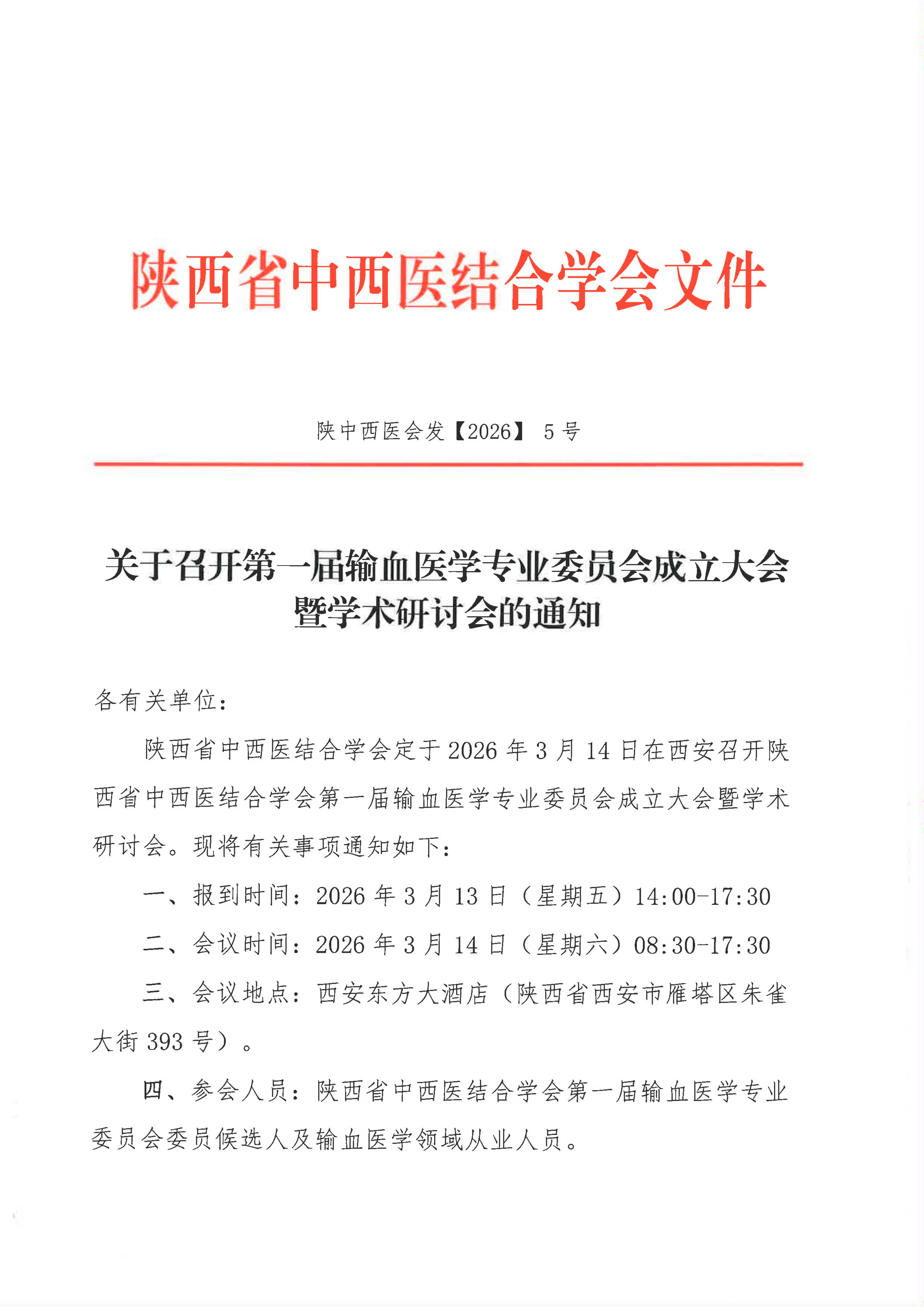 关于召开第一届输血医学专业委员会成立大会暨学术研讨会的通知