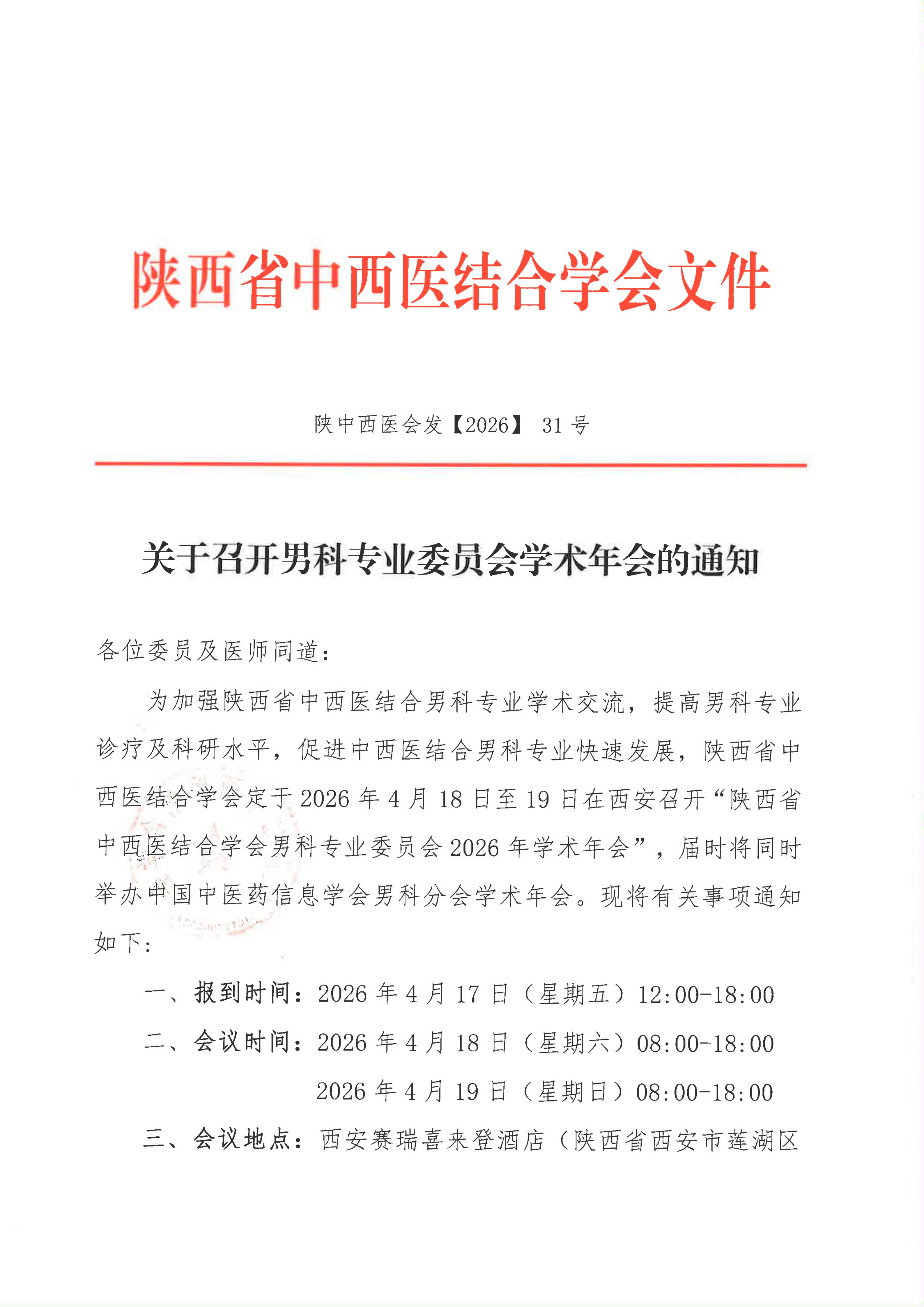 关于召开男科专业委员会学术年会的通知