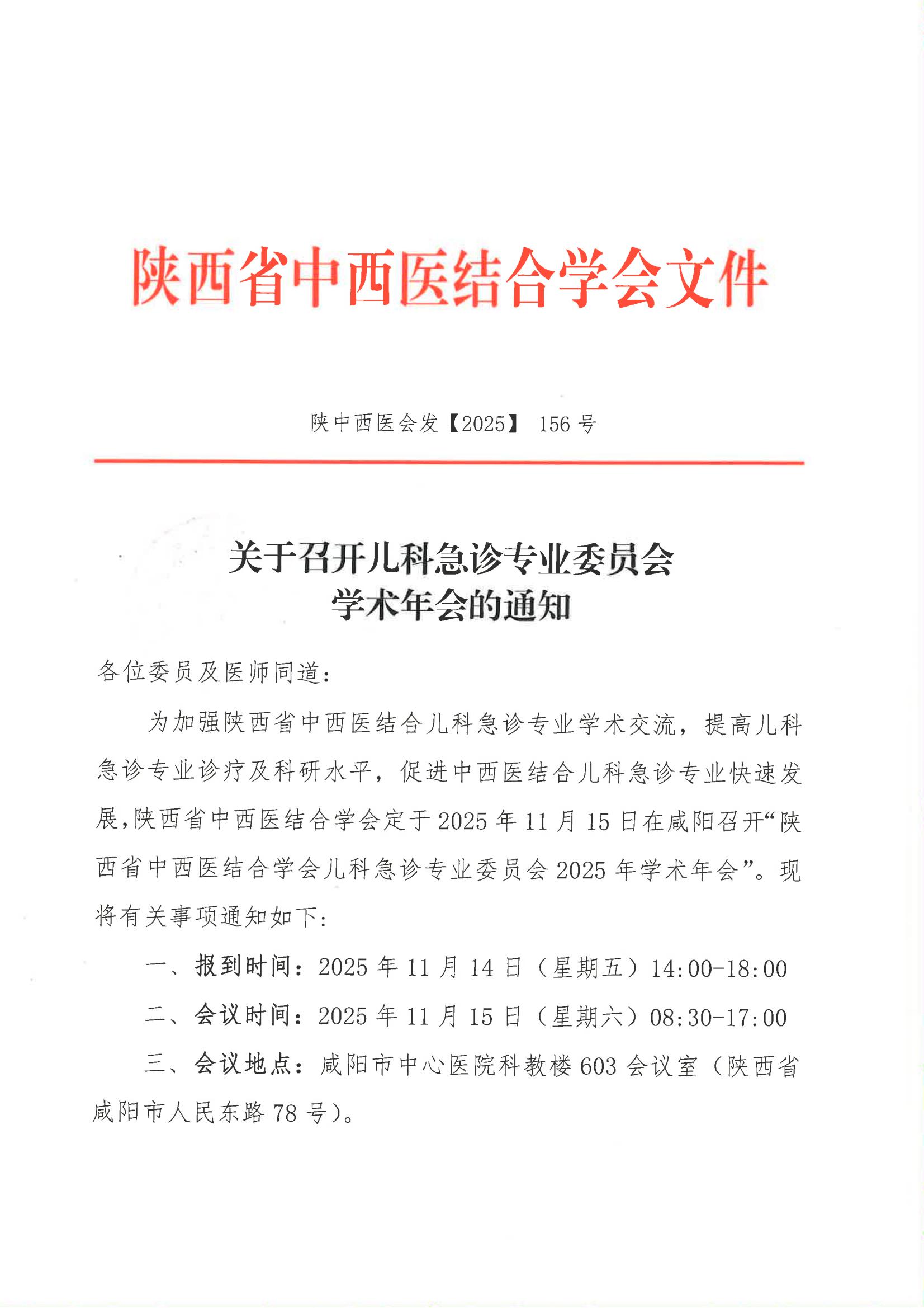 关于召开儿科急诊专业委员会学术年会的通知