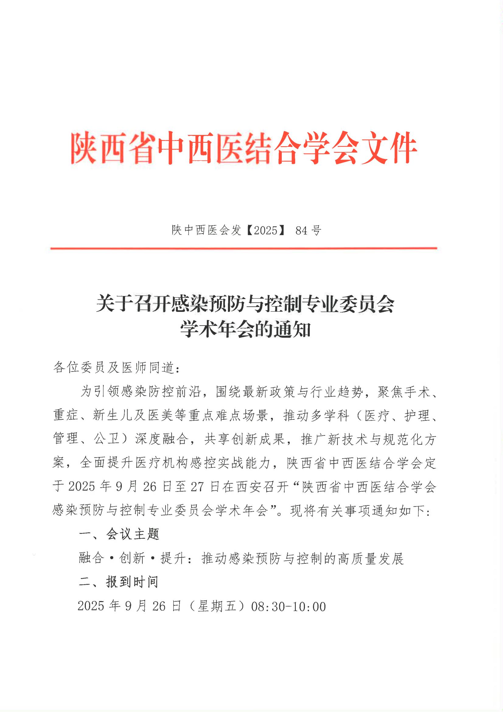 关于召开感染预防与控制专业委员会学术年会的通知