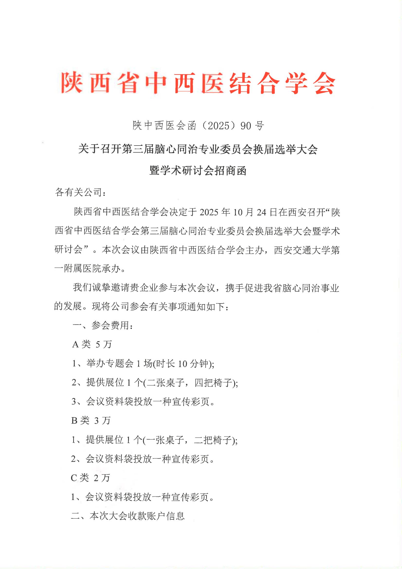 关于召开第三届脑心同治专业委员会换届选举大会暨学术研讨会招商函