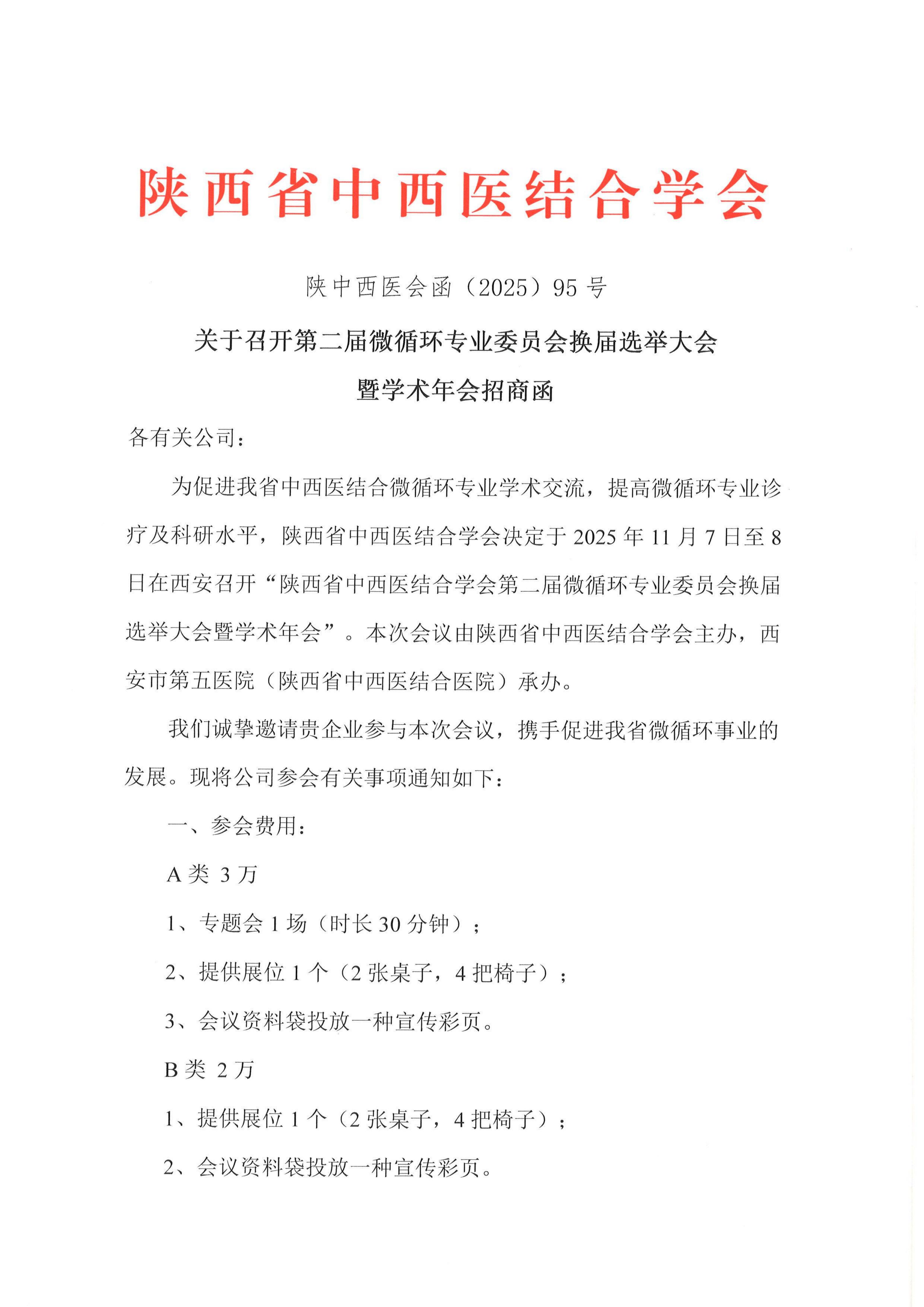 关于召开第二届微循环专业委员会换届选举大会暨学术年会招商函