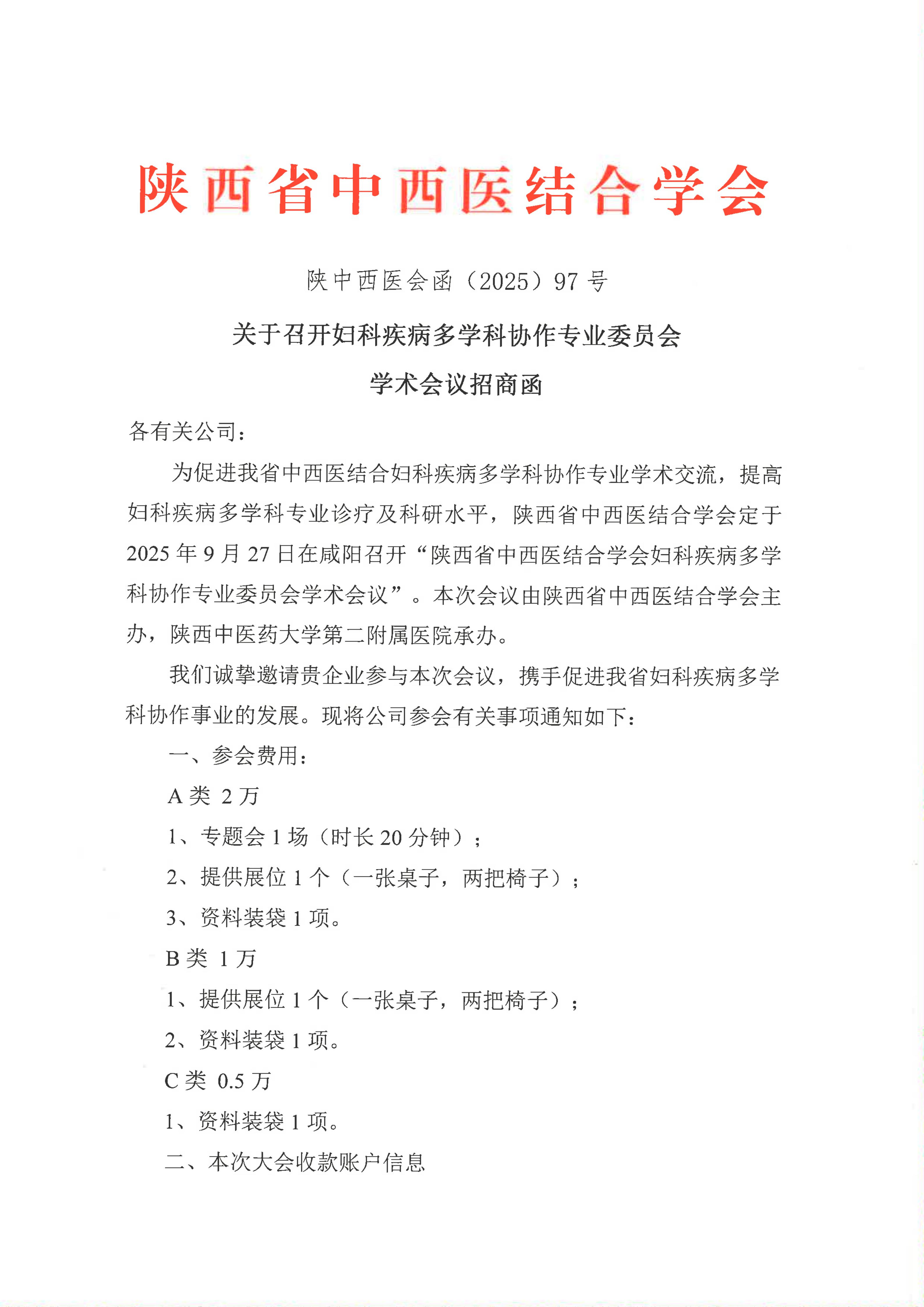 关于召开妇科疾病多学科协作专业委员会学术会议招商函