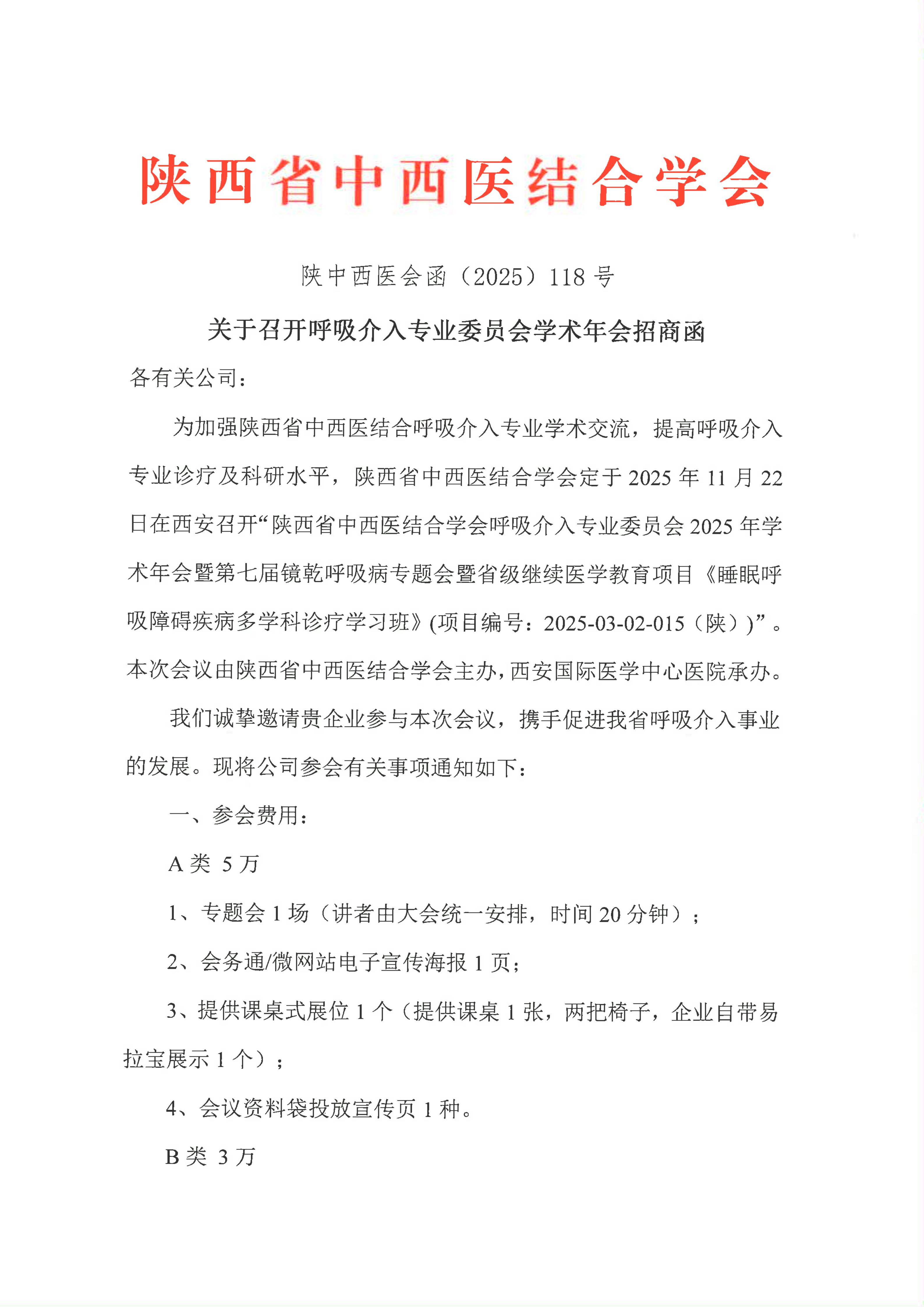 关于召开呼吸介入专业委员会学术年会招商函