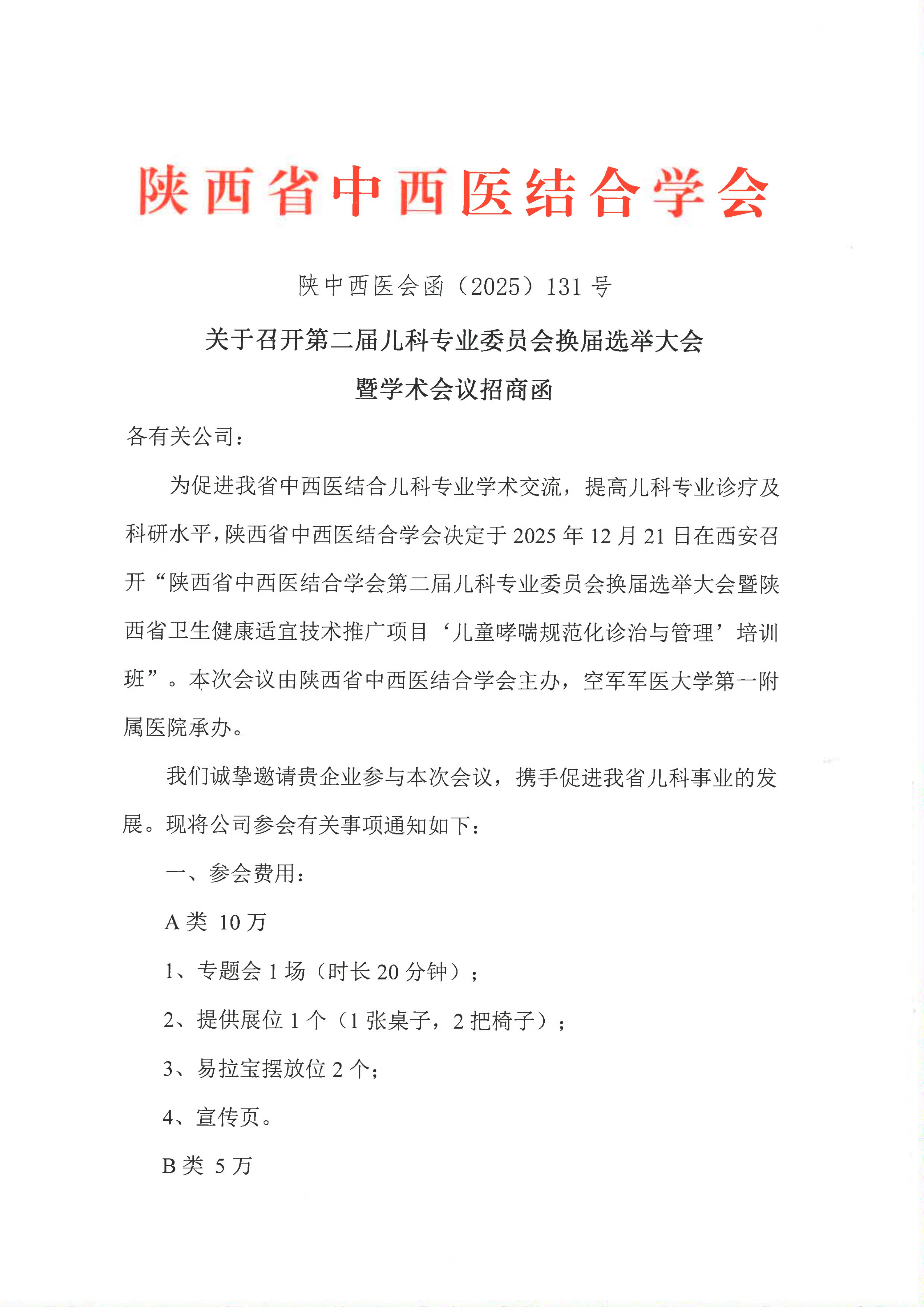 关于召开第二届儿科专业委员会换届选举大会暨学术会议招商函