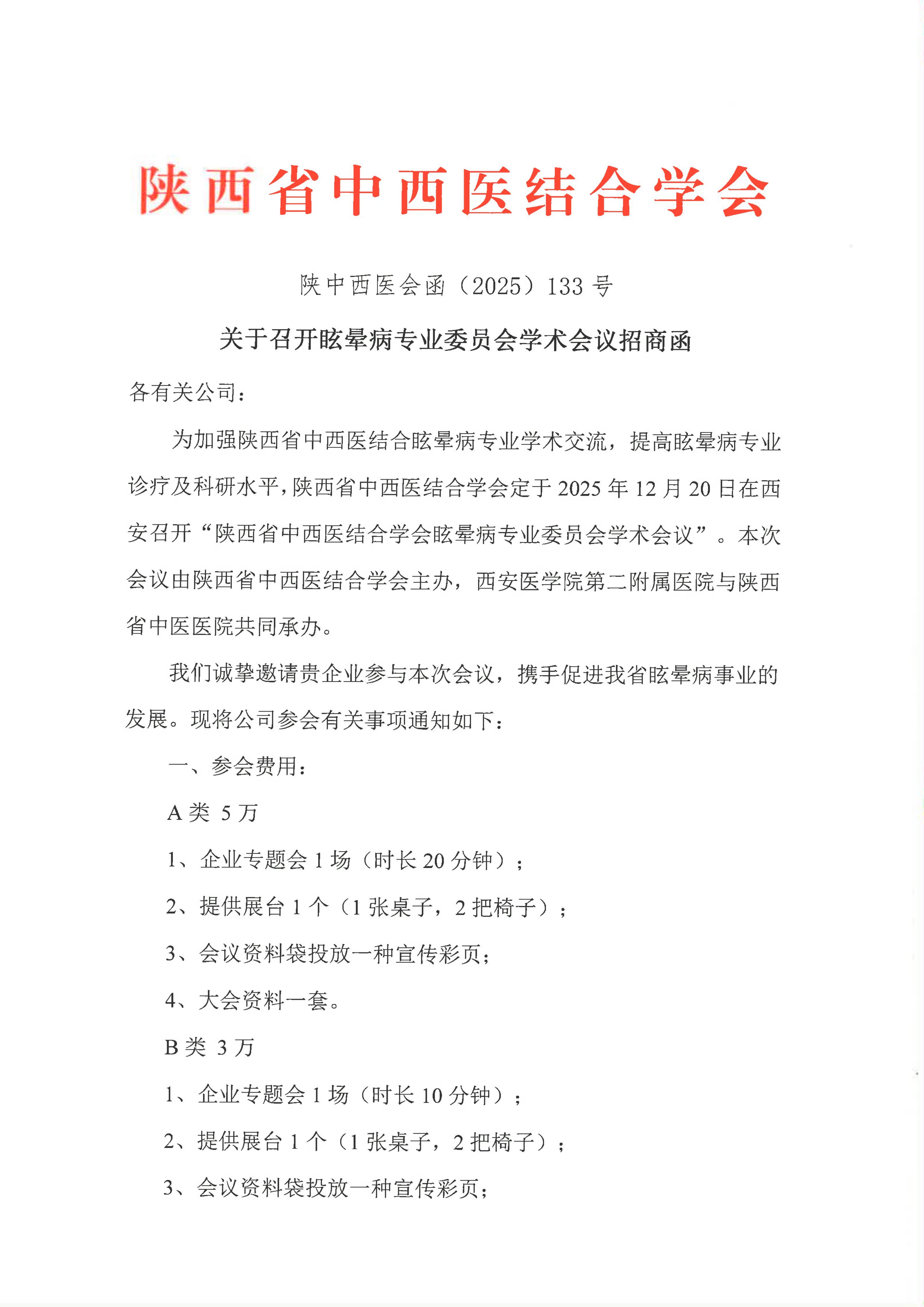 关于召开眩晕病专业委员会学术会议招商函