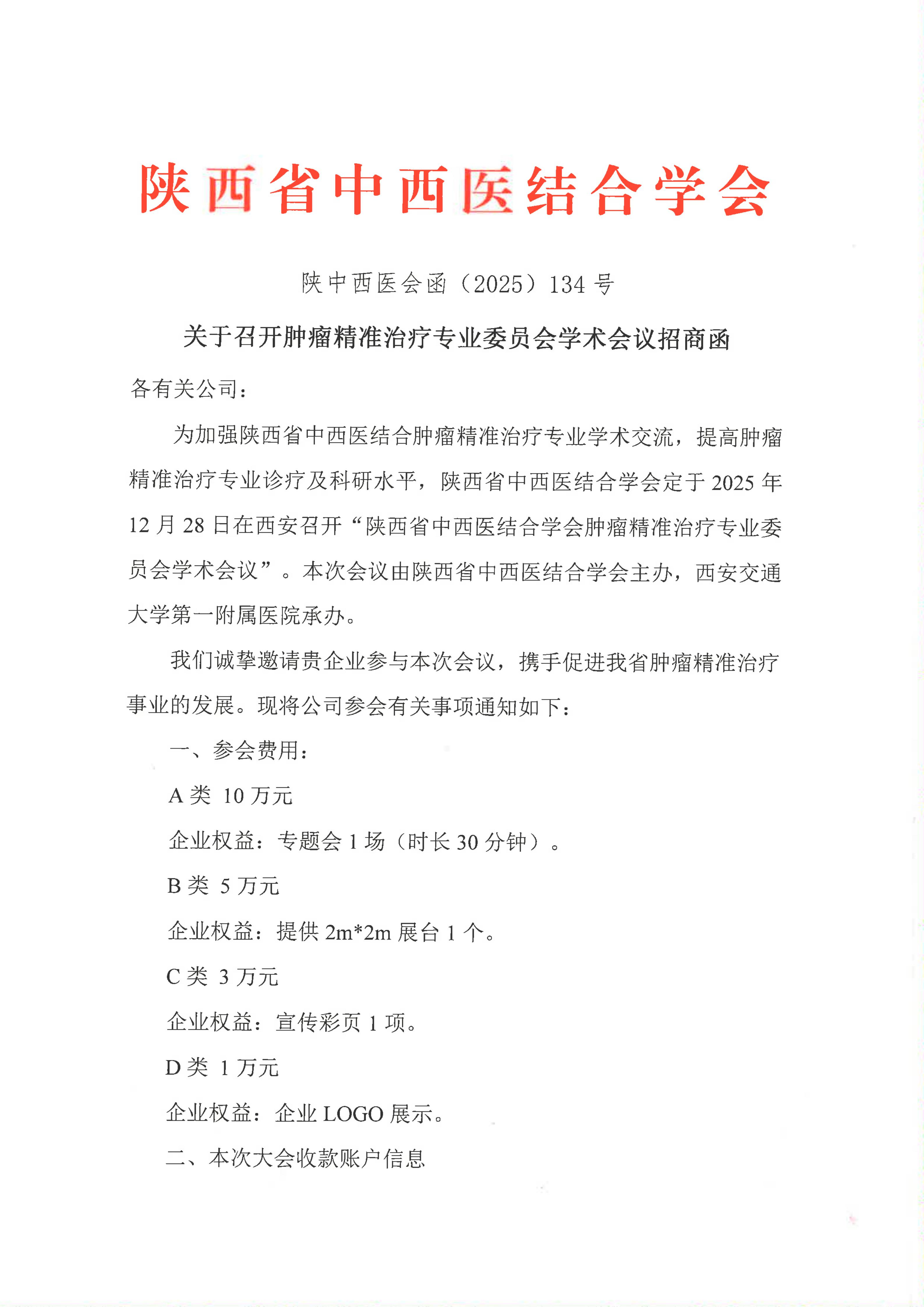关于召开肿瘤精准治疗专业委员会学术会议招商函