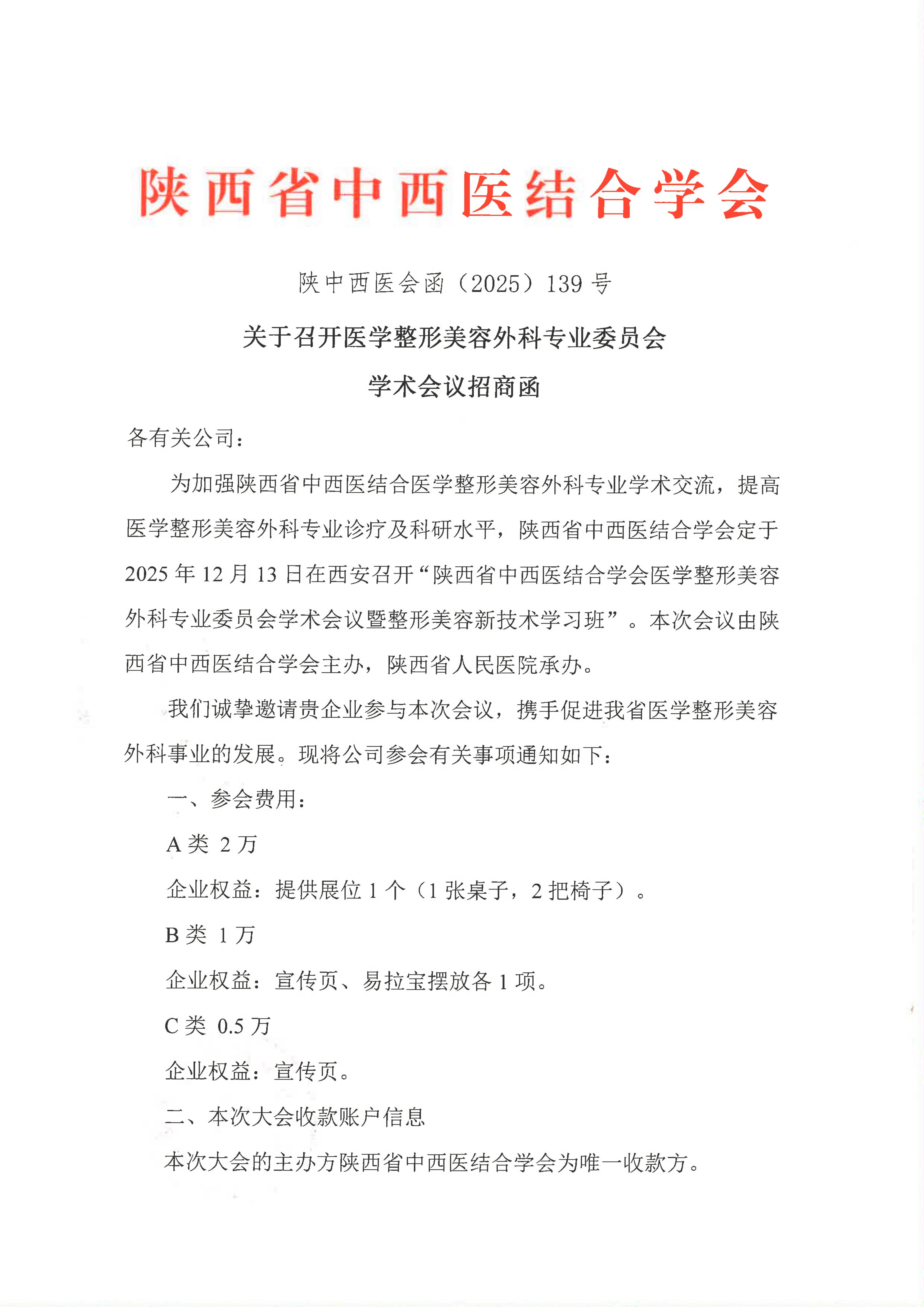 关于召开医学整形美容外科专业委员会学术会议招商函