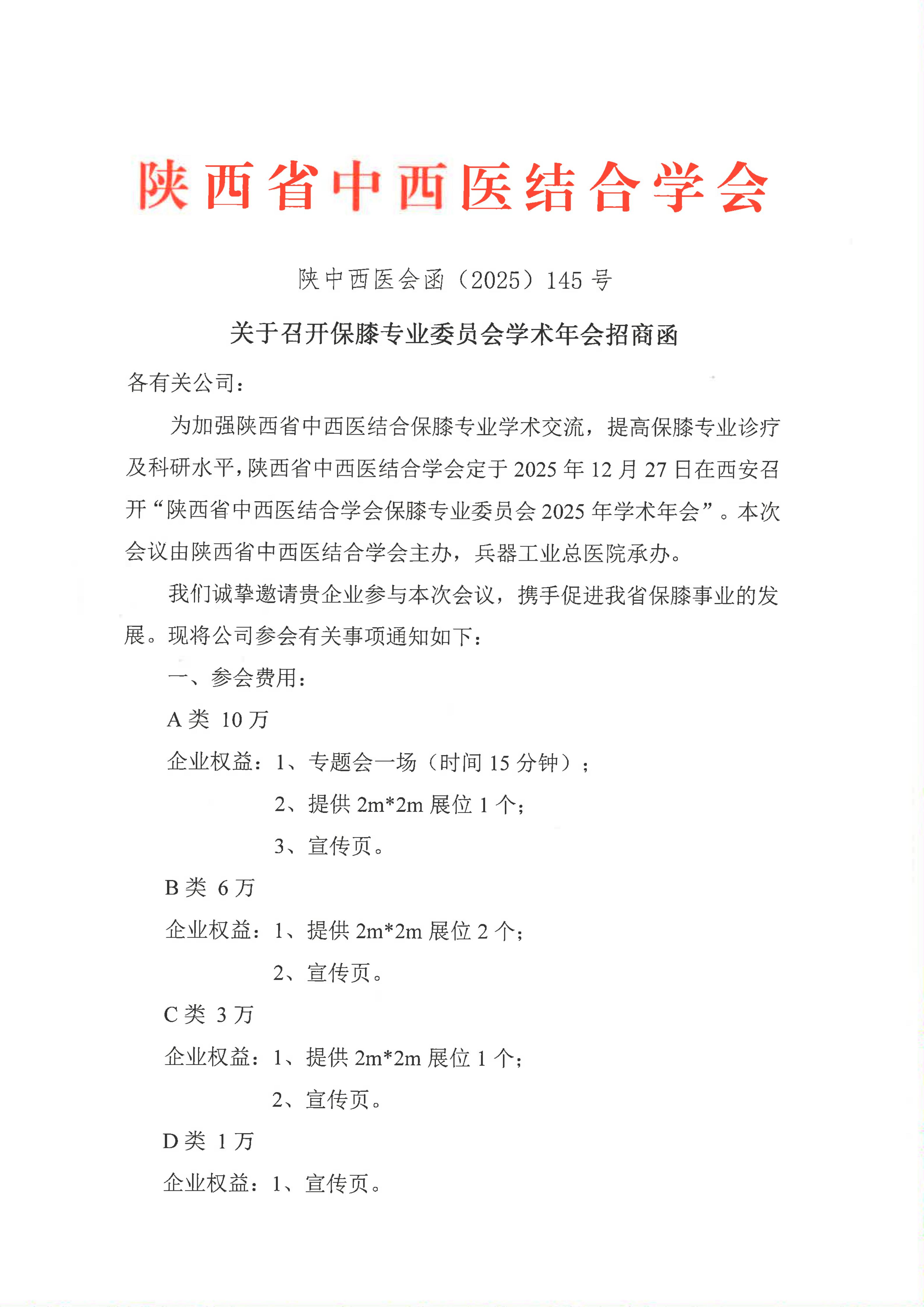 关于召开保膝专业委员会学术年会招商函