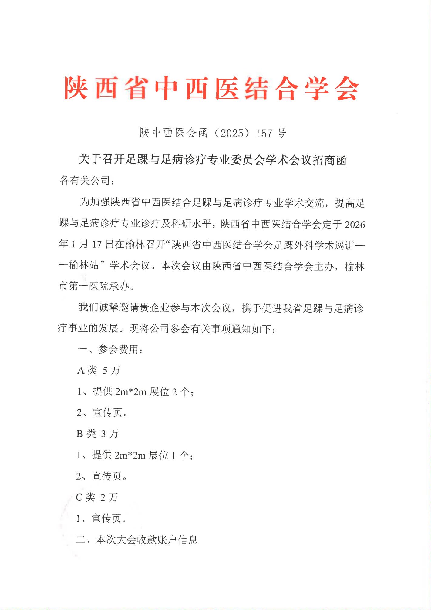 关于召开足踝与足病诊疗专业委员会学术会议招商函
