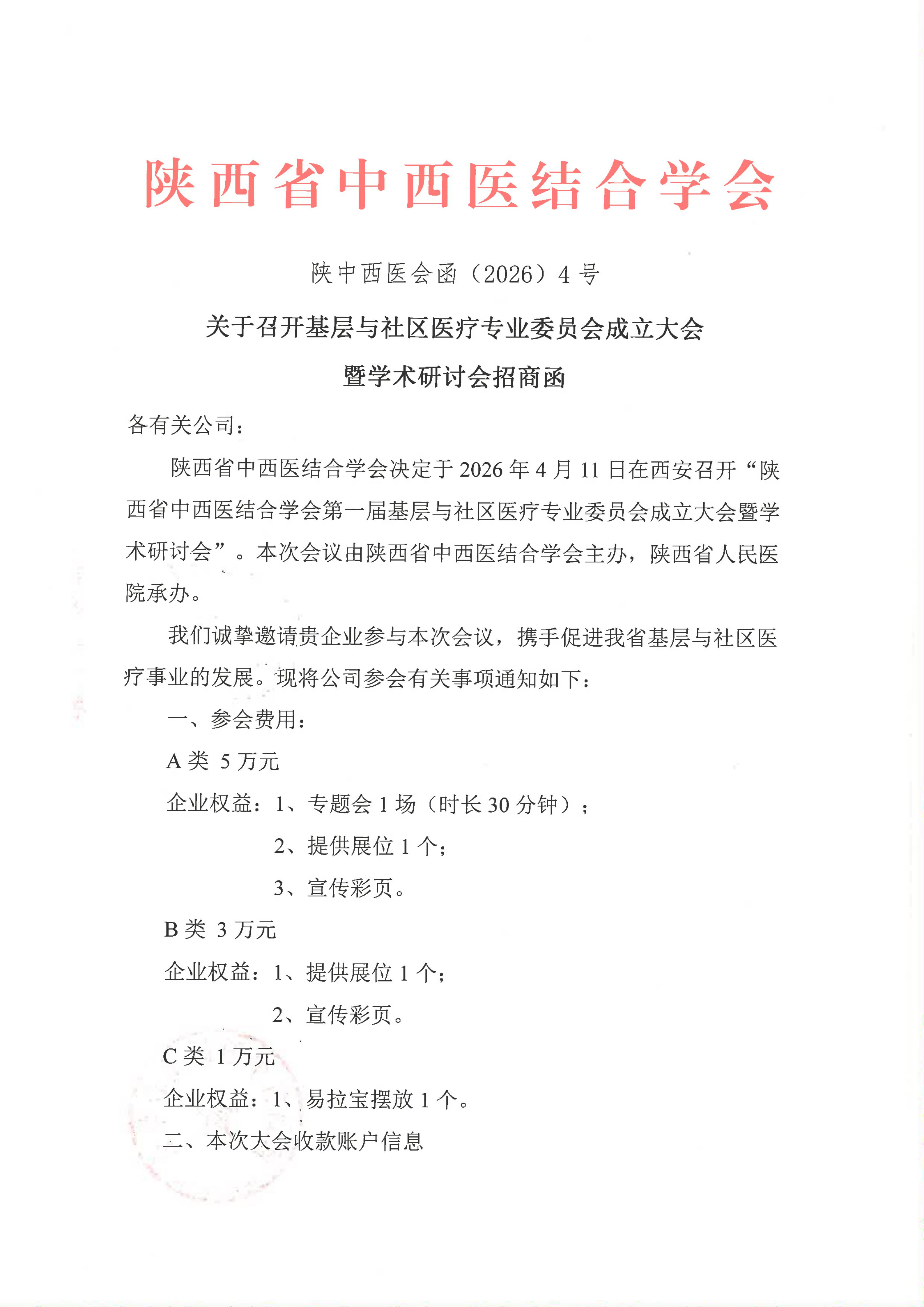 关于召开基层与社区医疗专业委员会成立大会暨学术研讨会招商函