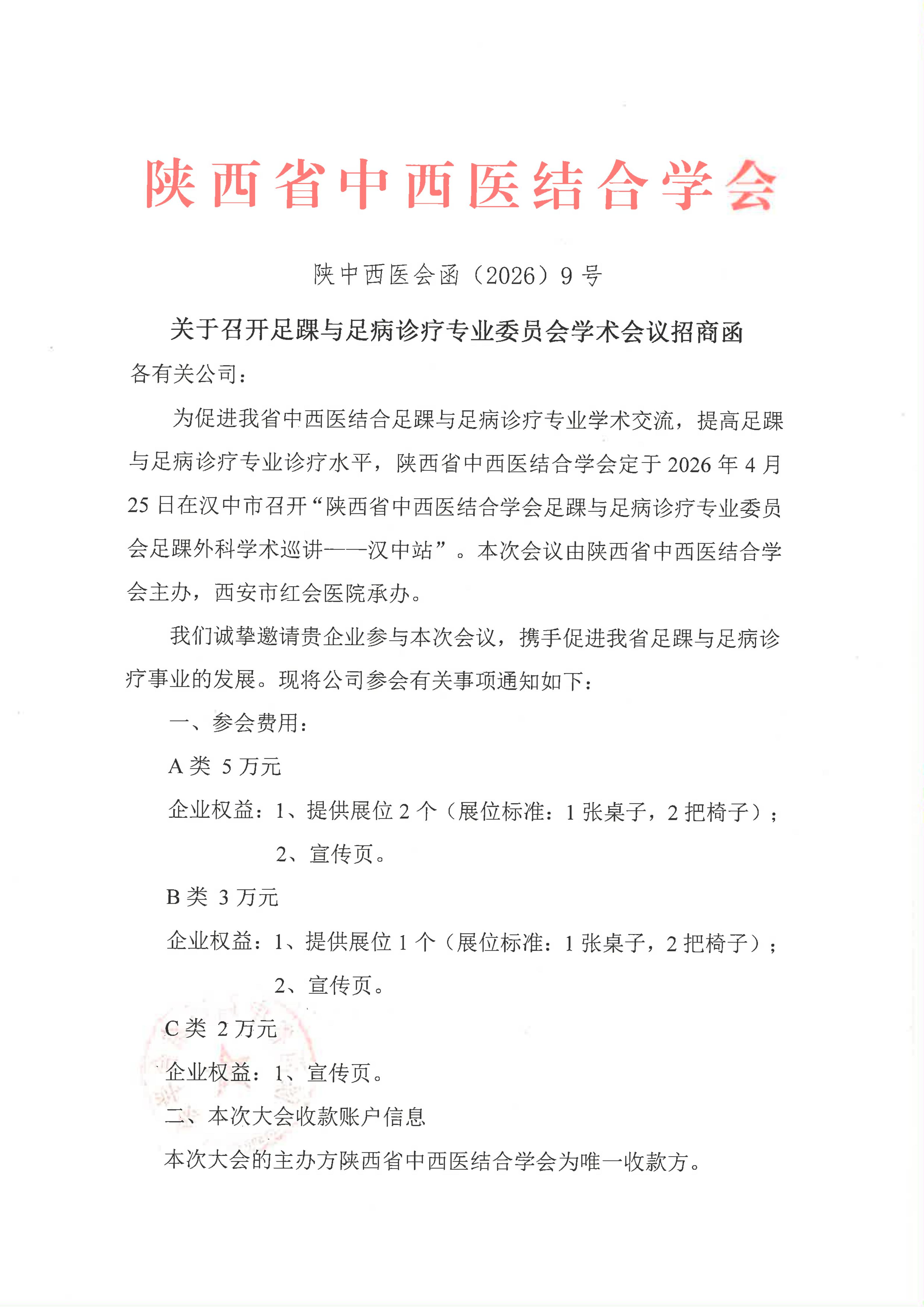 关于召开足踝与足病诊疗专业委员会学术会议招商函