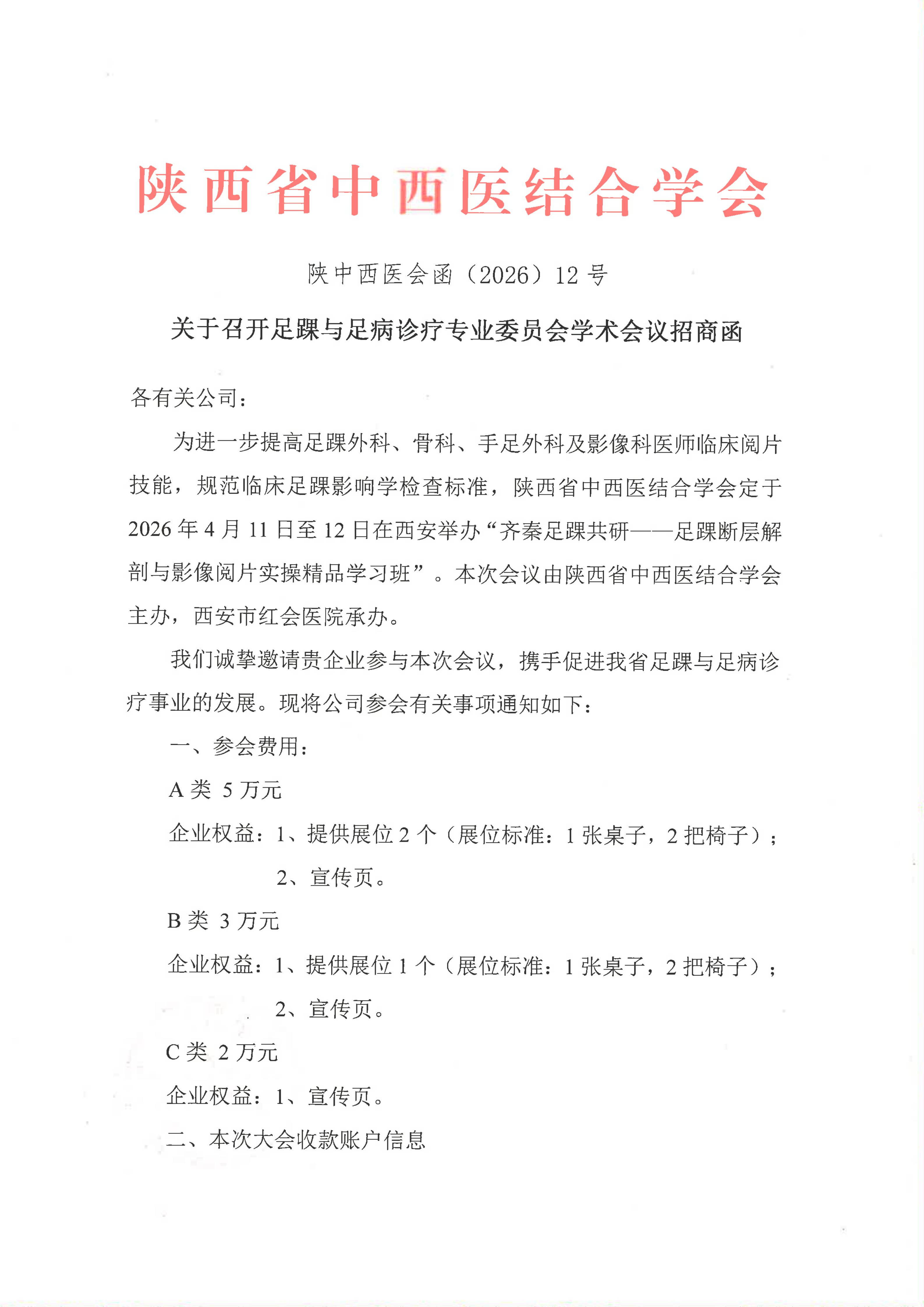 关于召开足踝与足病诊疗专业委员会学术会议招商函