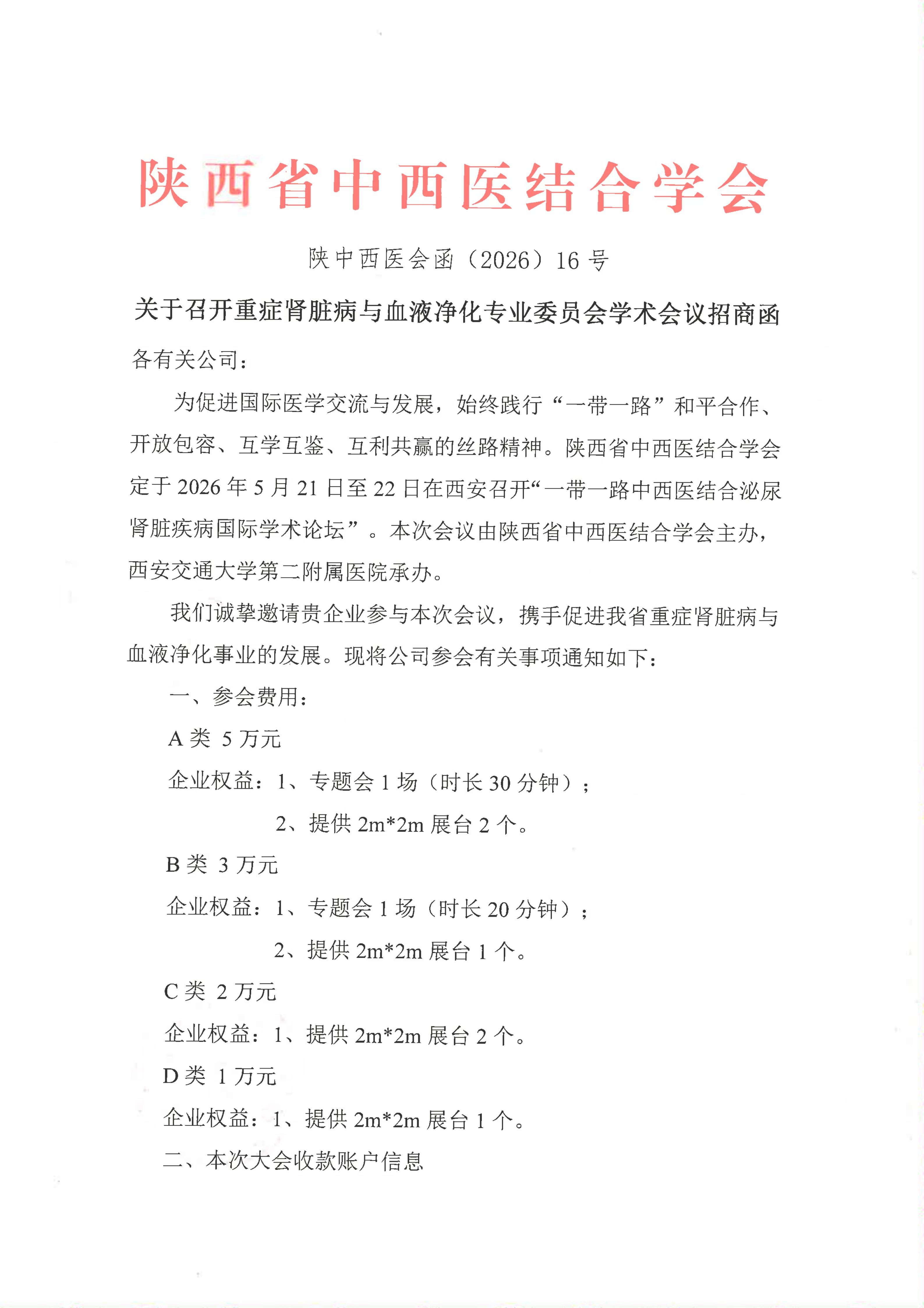 关于召开重症肾脏病与血液净化专业委员会学术会议招商函