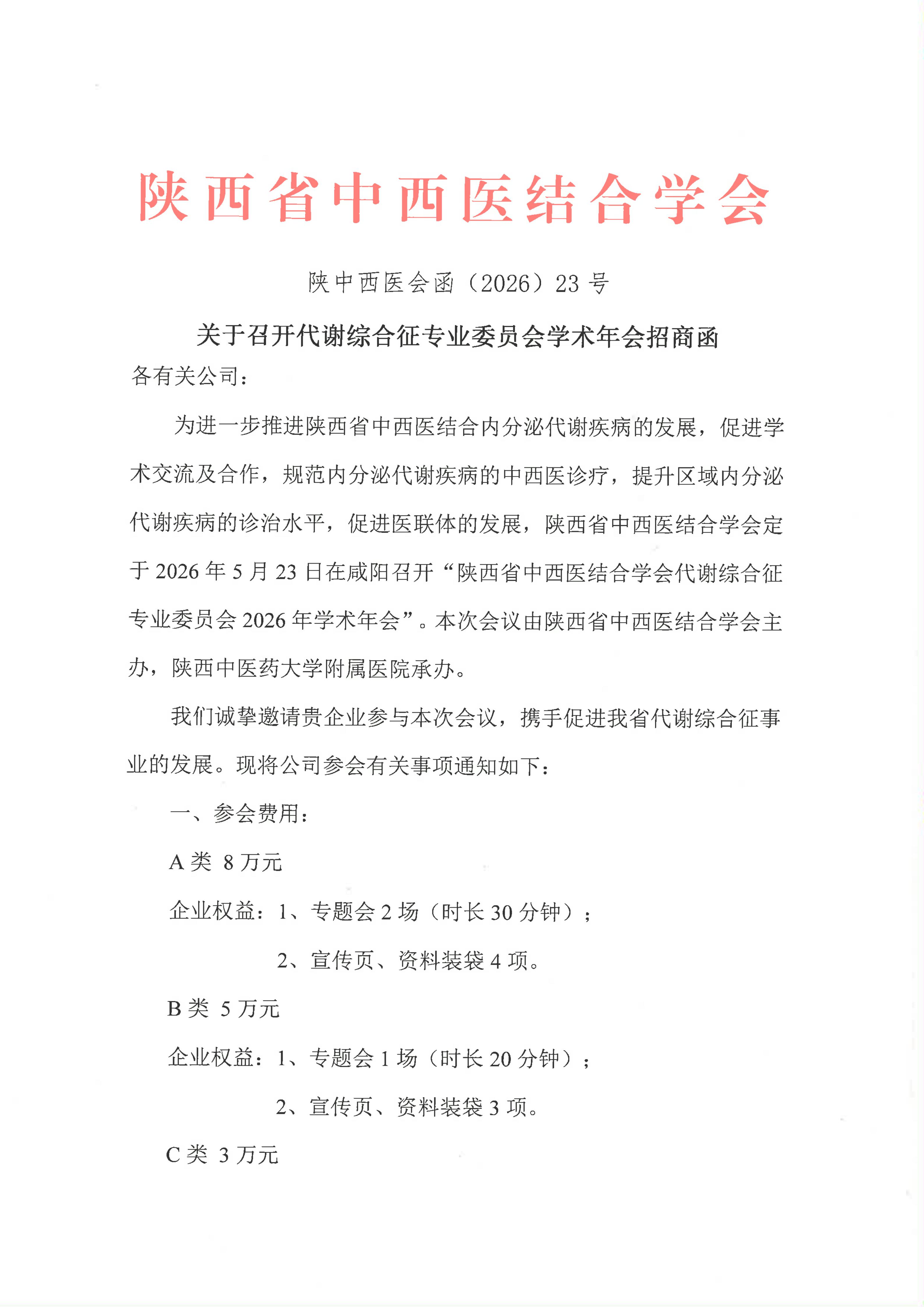 关于召开代谢综合征专业委员会学术年会招商函