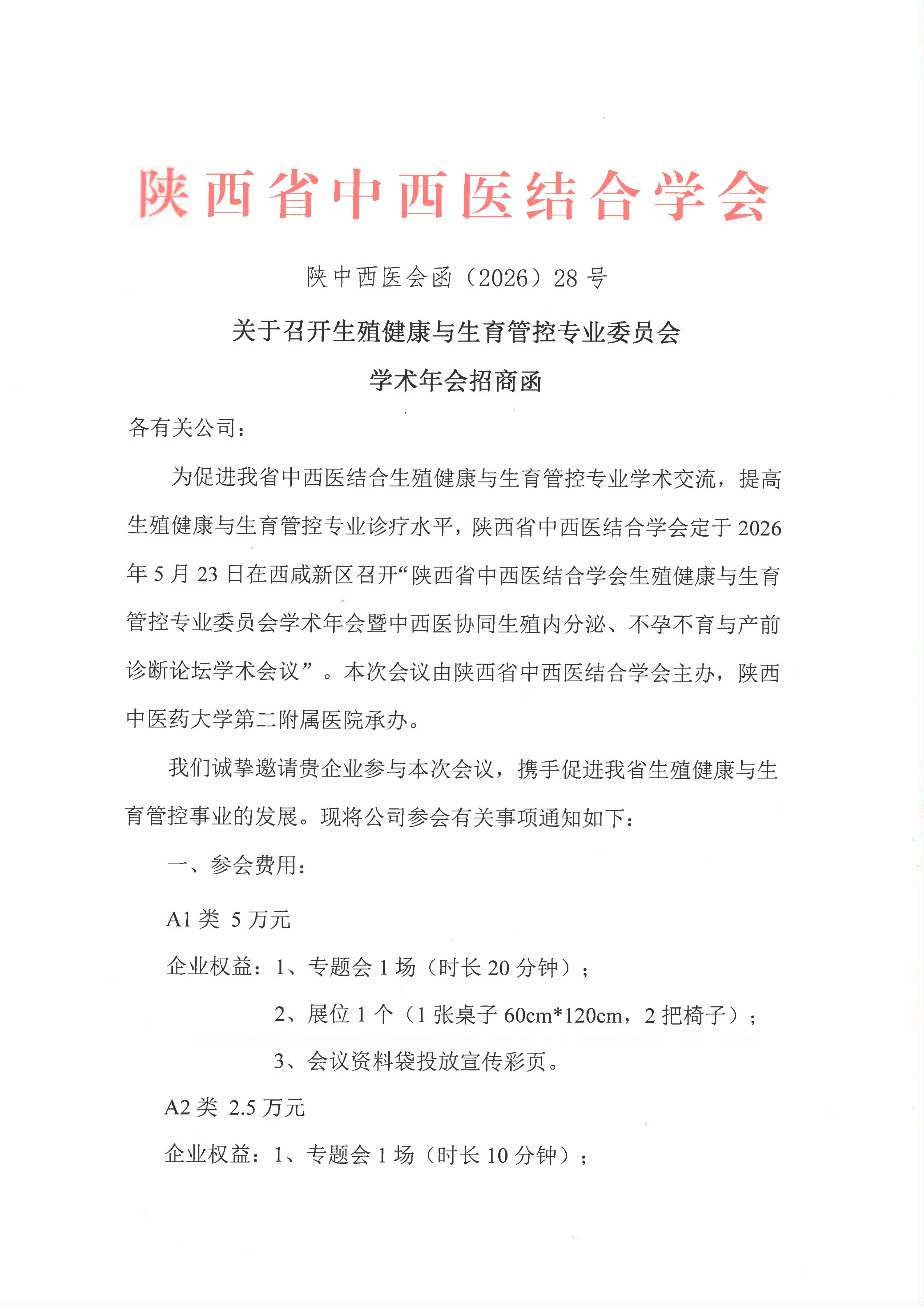 关于召开生殖健康与生育管控专业委员会学术年会招商函