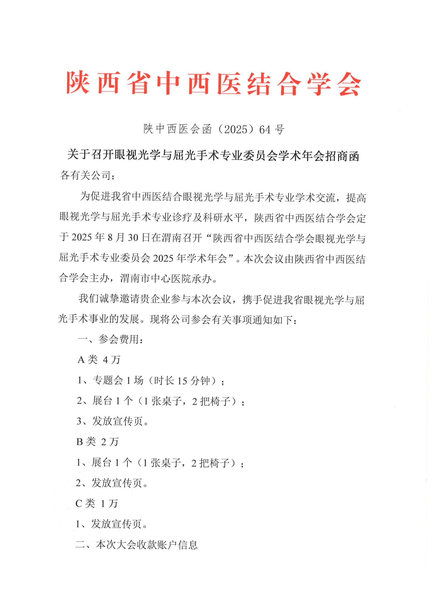 关于召开眼视光学与屈光手术专业委员会学术年会招商函