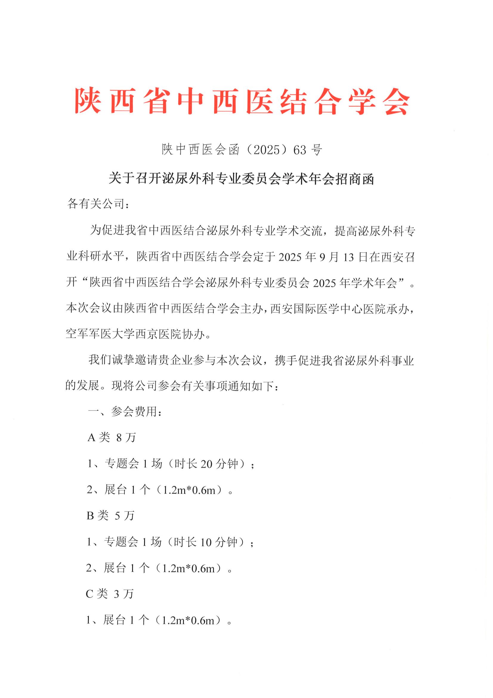 关于召开泌尿外科专业委员会学术年会招商函