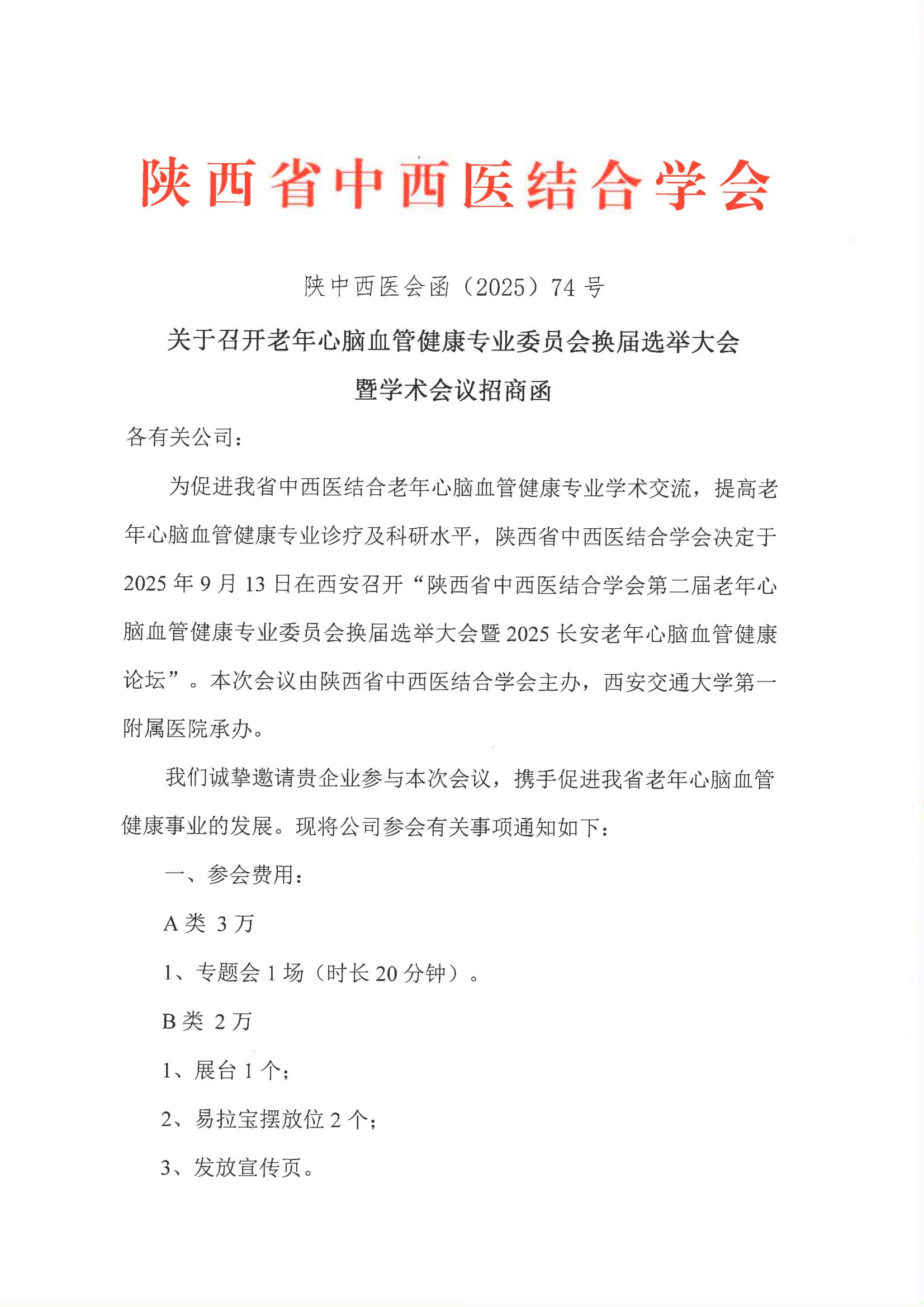 关于召开老年心脑血管健康专业委员会换届选举大会暨学术会议招商函
