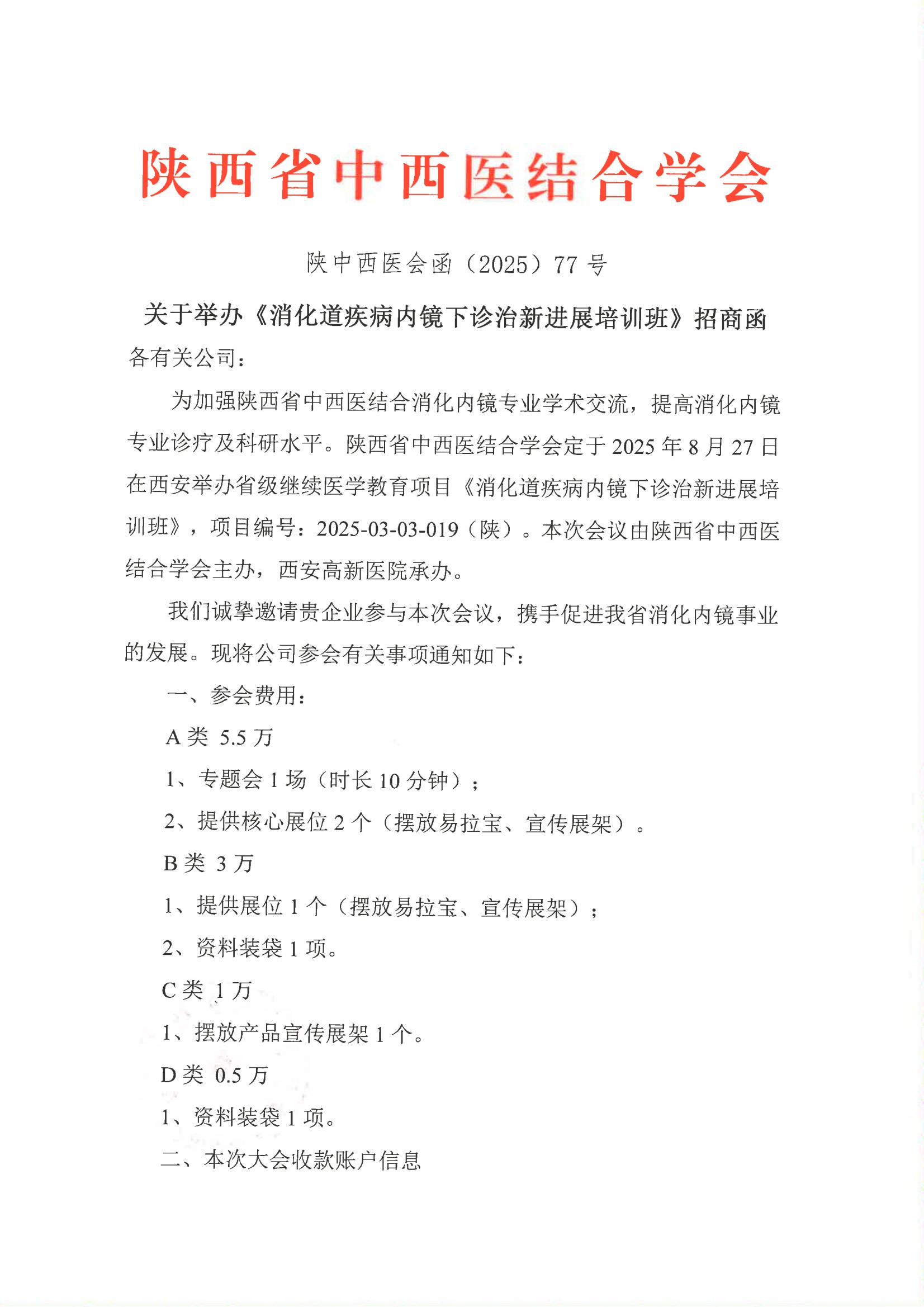 关于举办《消化道疾病内镜下诊治新进展培训班》招商函