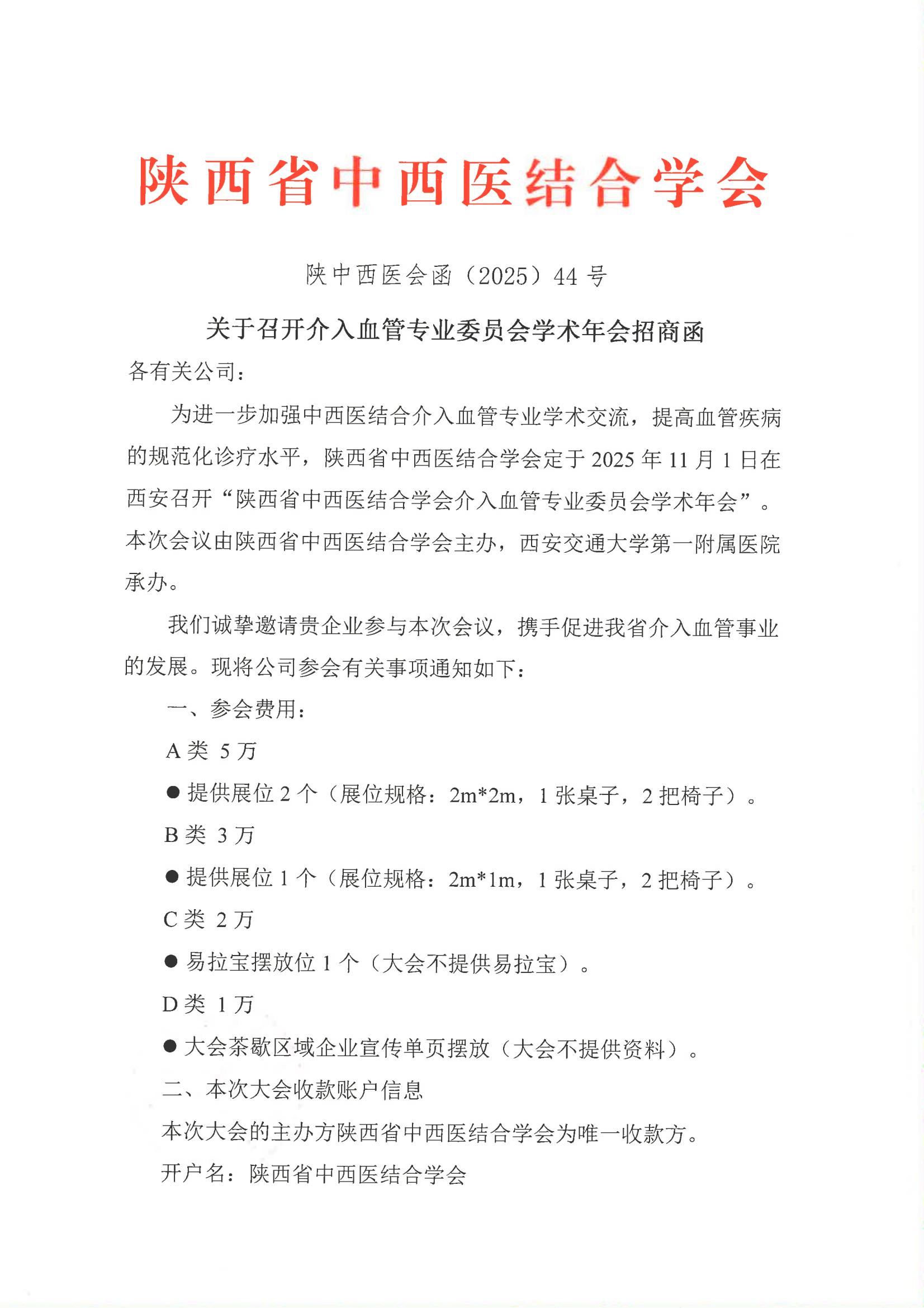 关于召开介入血管专业委员会学术年会招商函