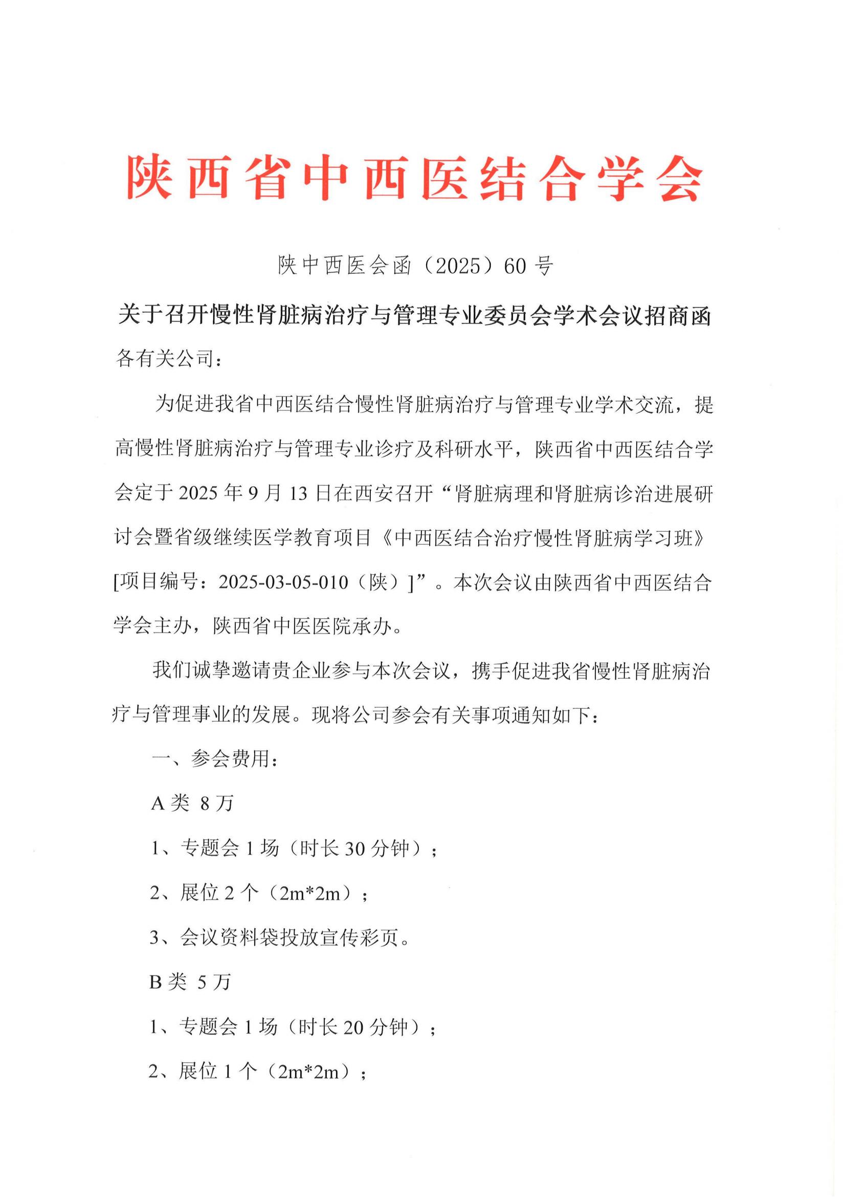 关于召开慢性肾脏病治疗与管理专业委员会学术会议招商函