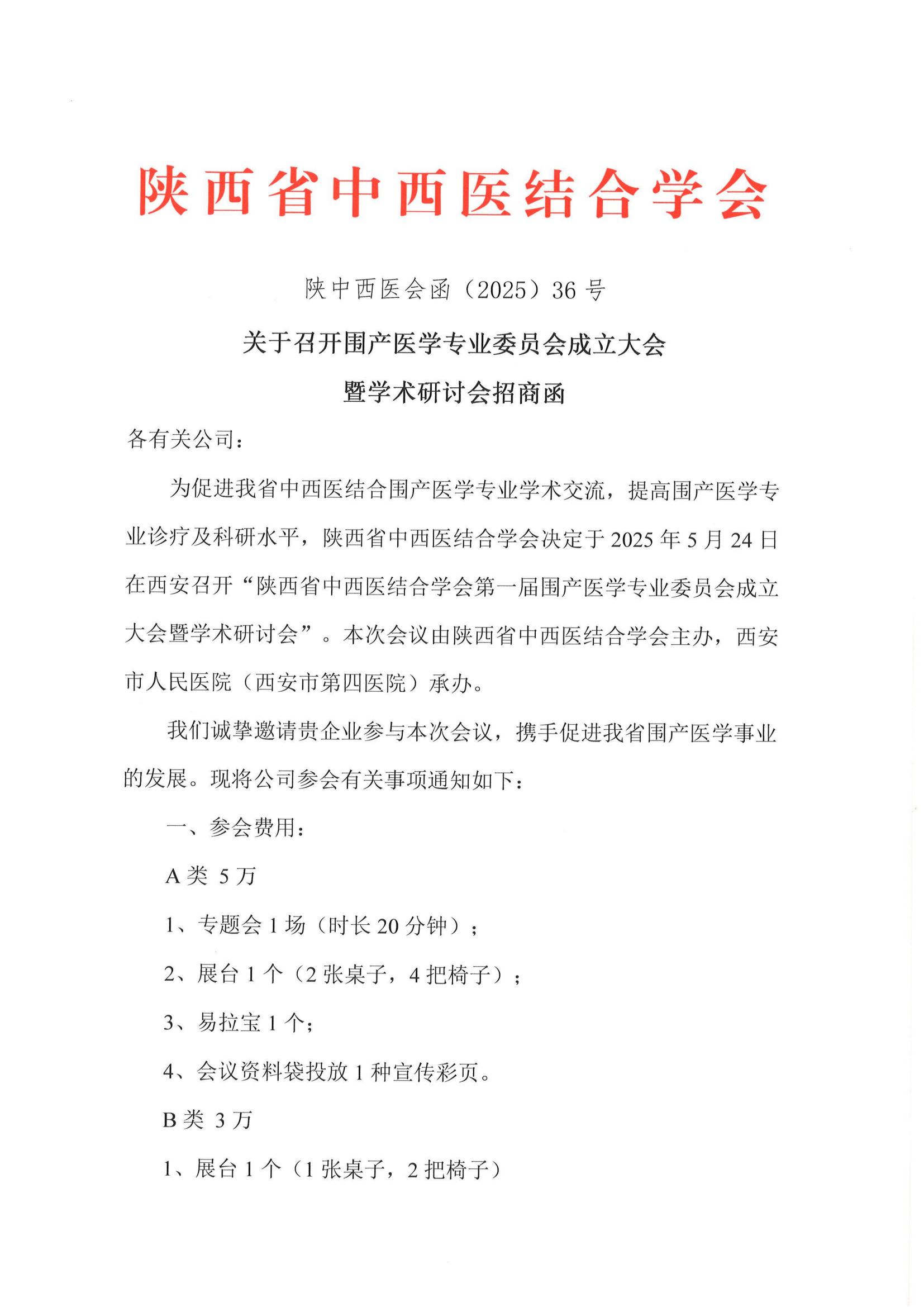 关于召开围产医学专业委员会成立大会暨学术研讨会招商函