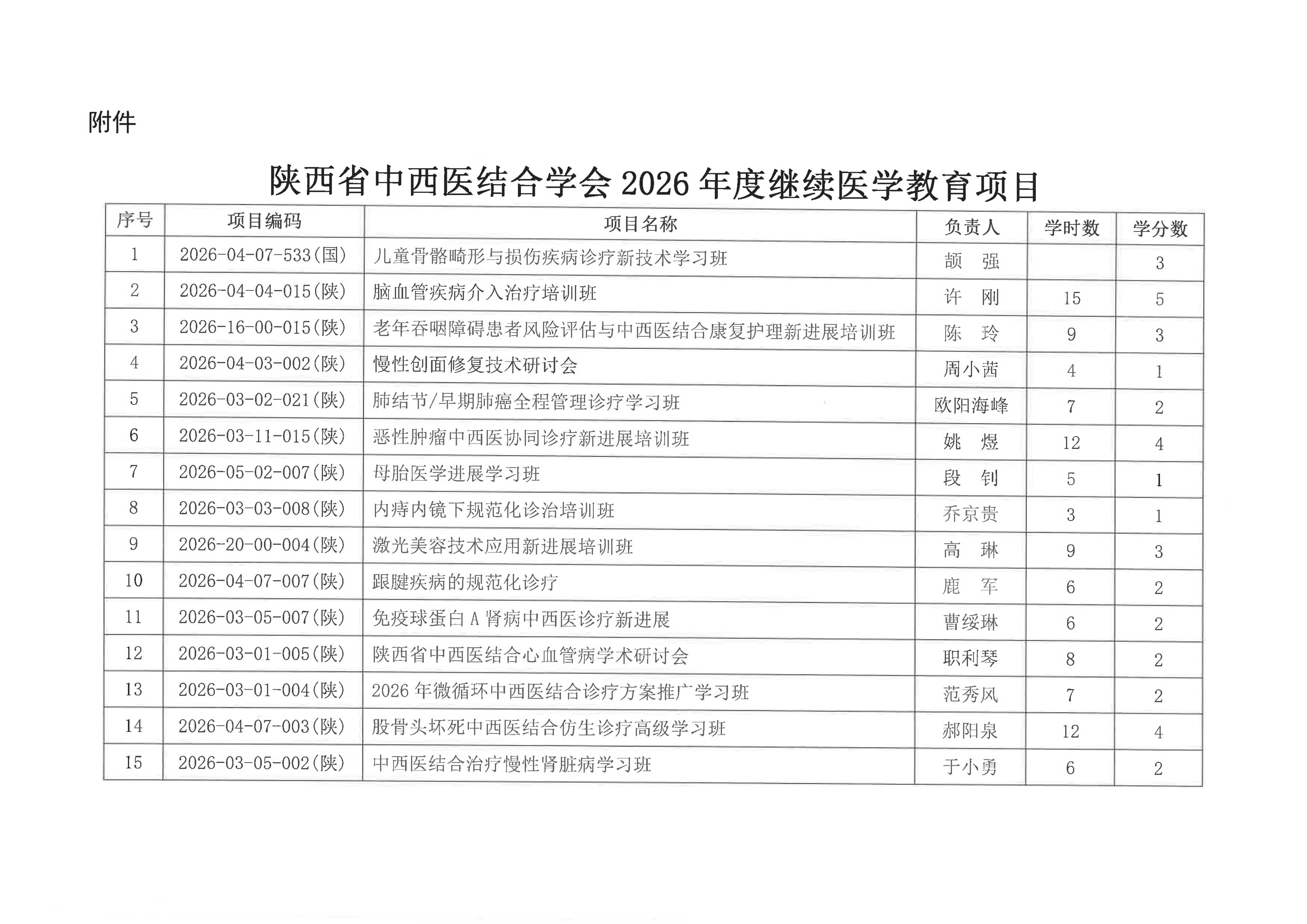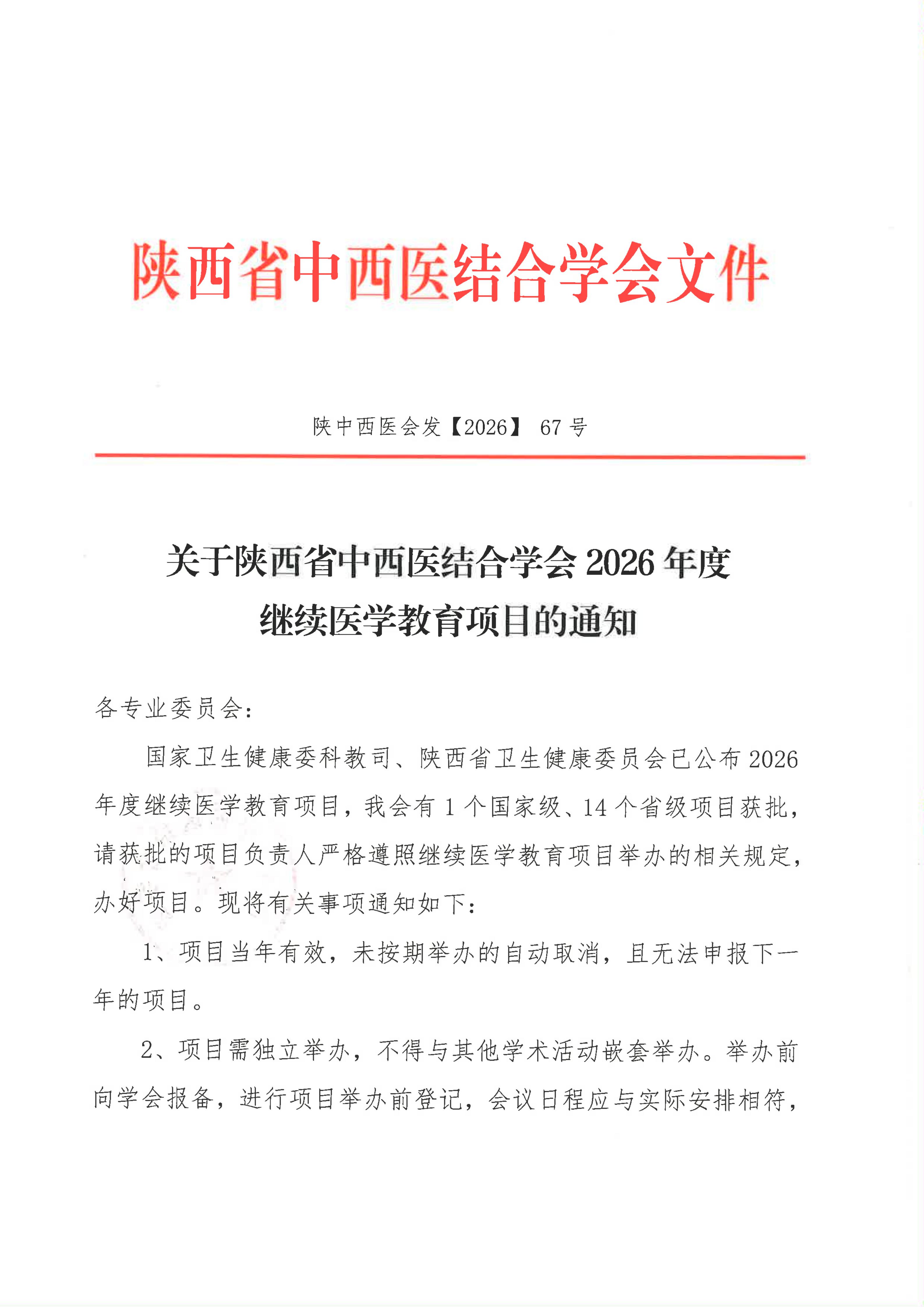 关于陕西省中西医结合学会2026年度继续医学教育项目的通知