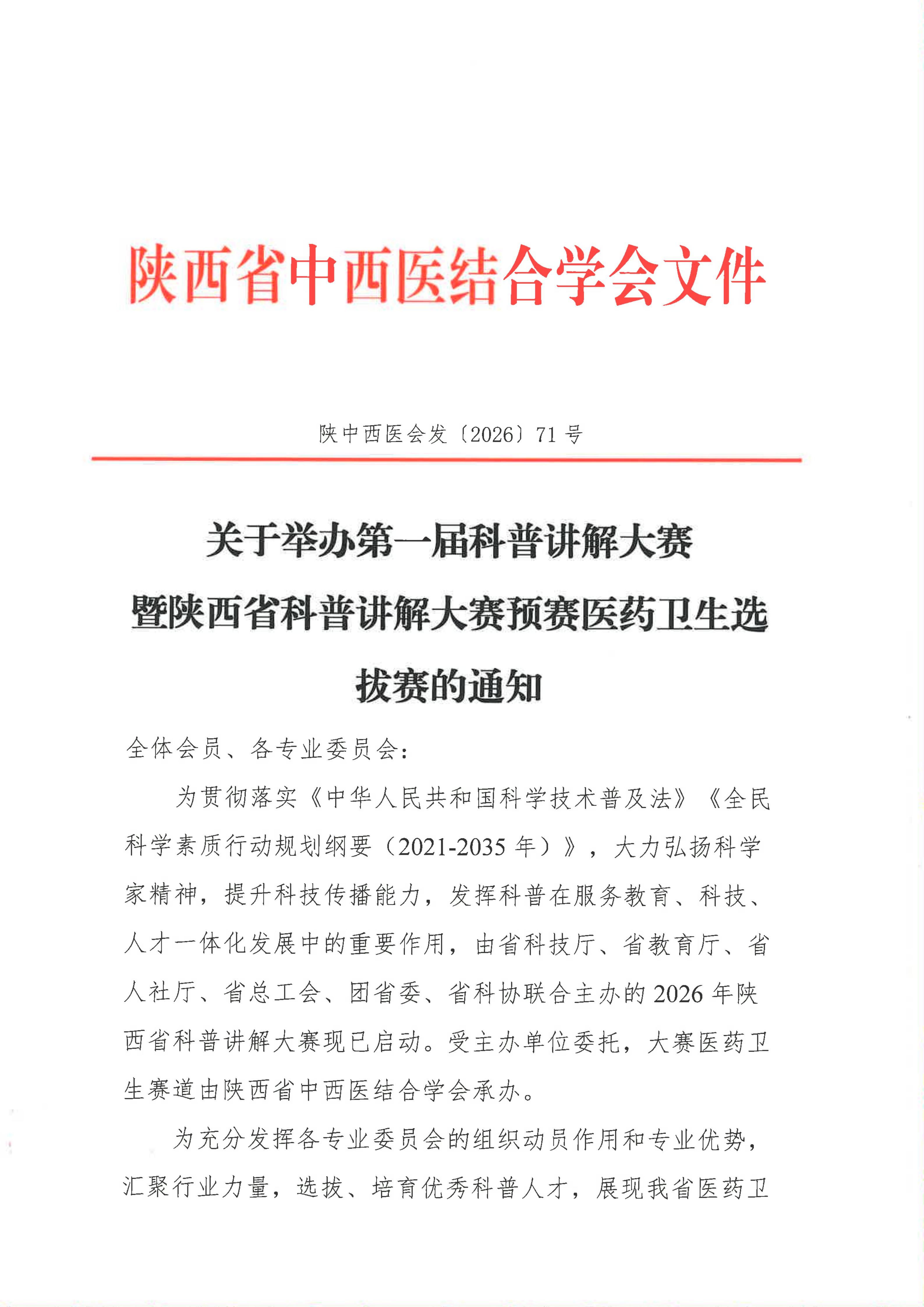 关于举办第一届科普讲解大赛暨陕西省科普讲解大赛预赛医药卫生选拔赛的通知