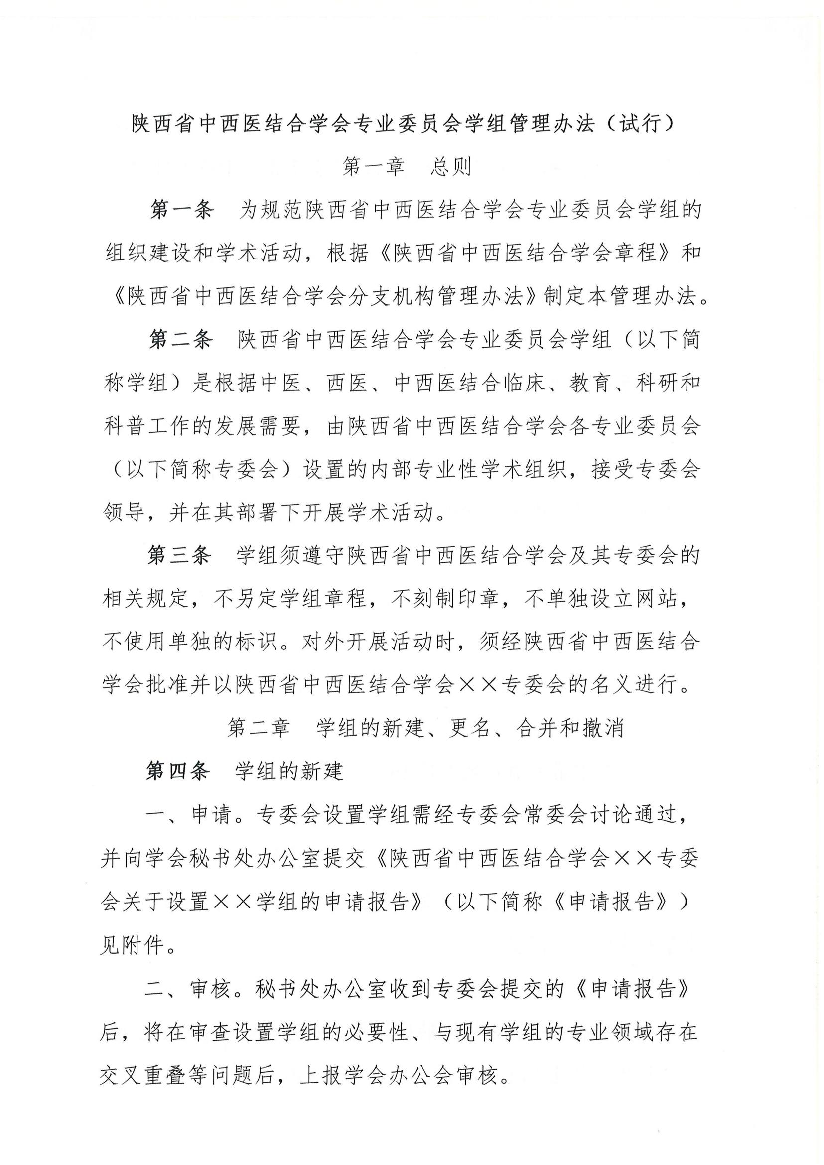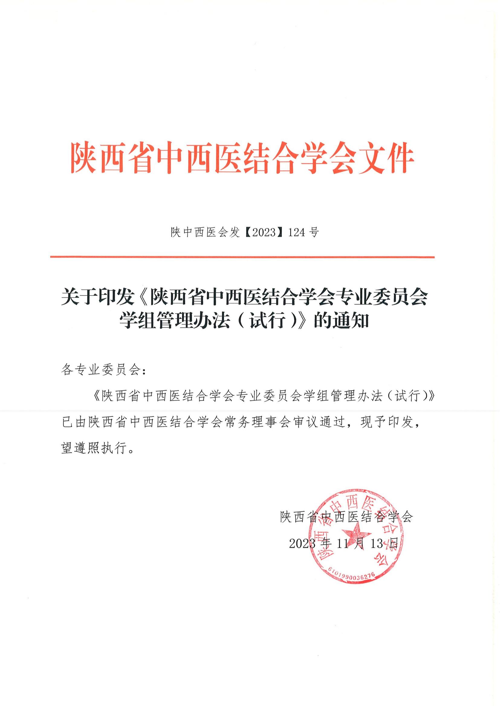 关于印发《陕西省中西医结合学会专业委员会学组管理办法(试行)》的通知