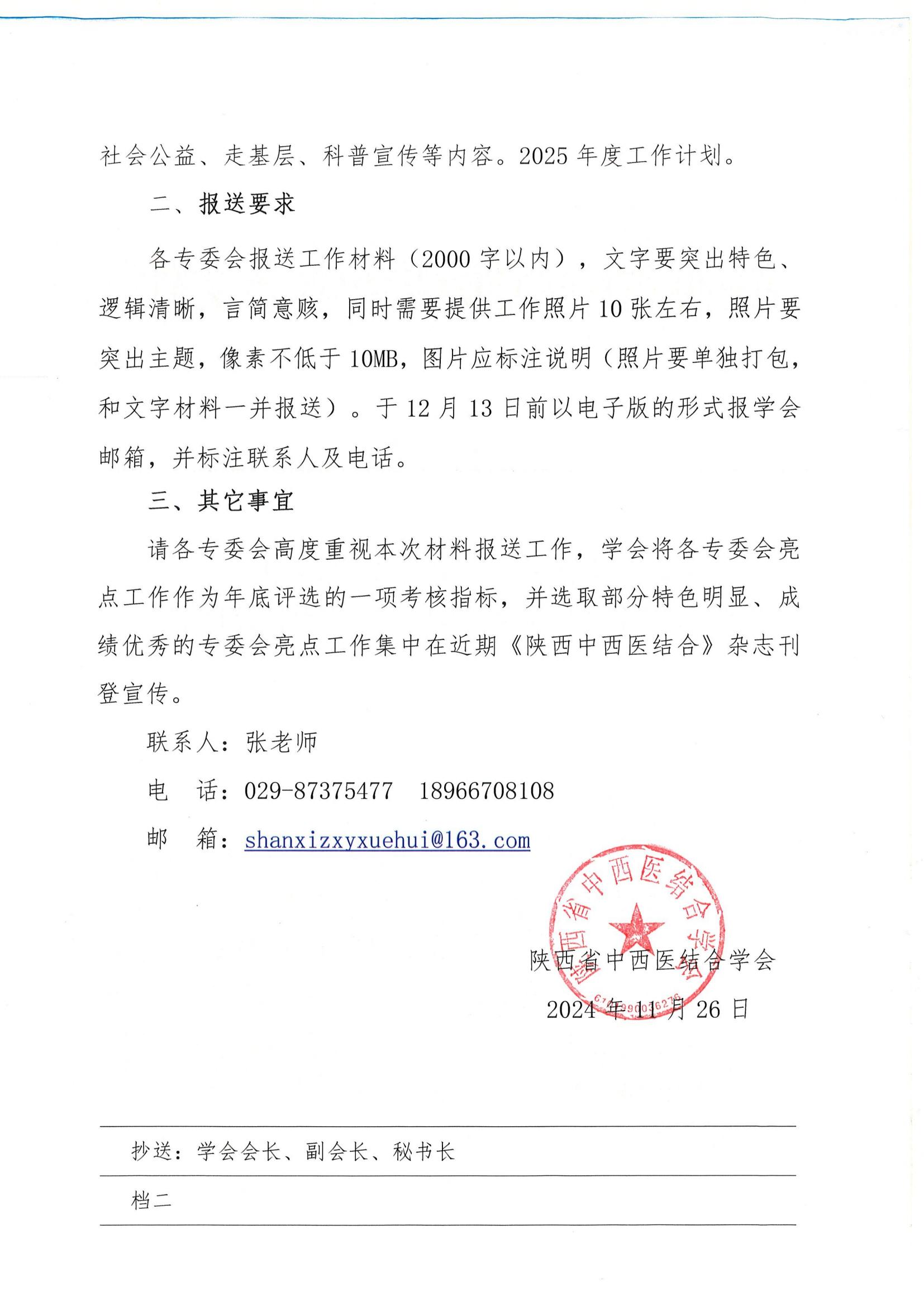 陕西省中西医结合学会关于报送2024年工作亮点及2025年工作计划的通知
