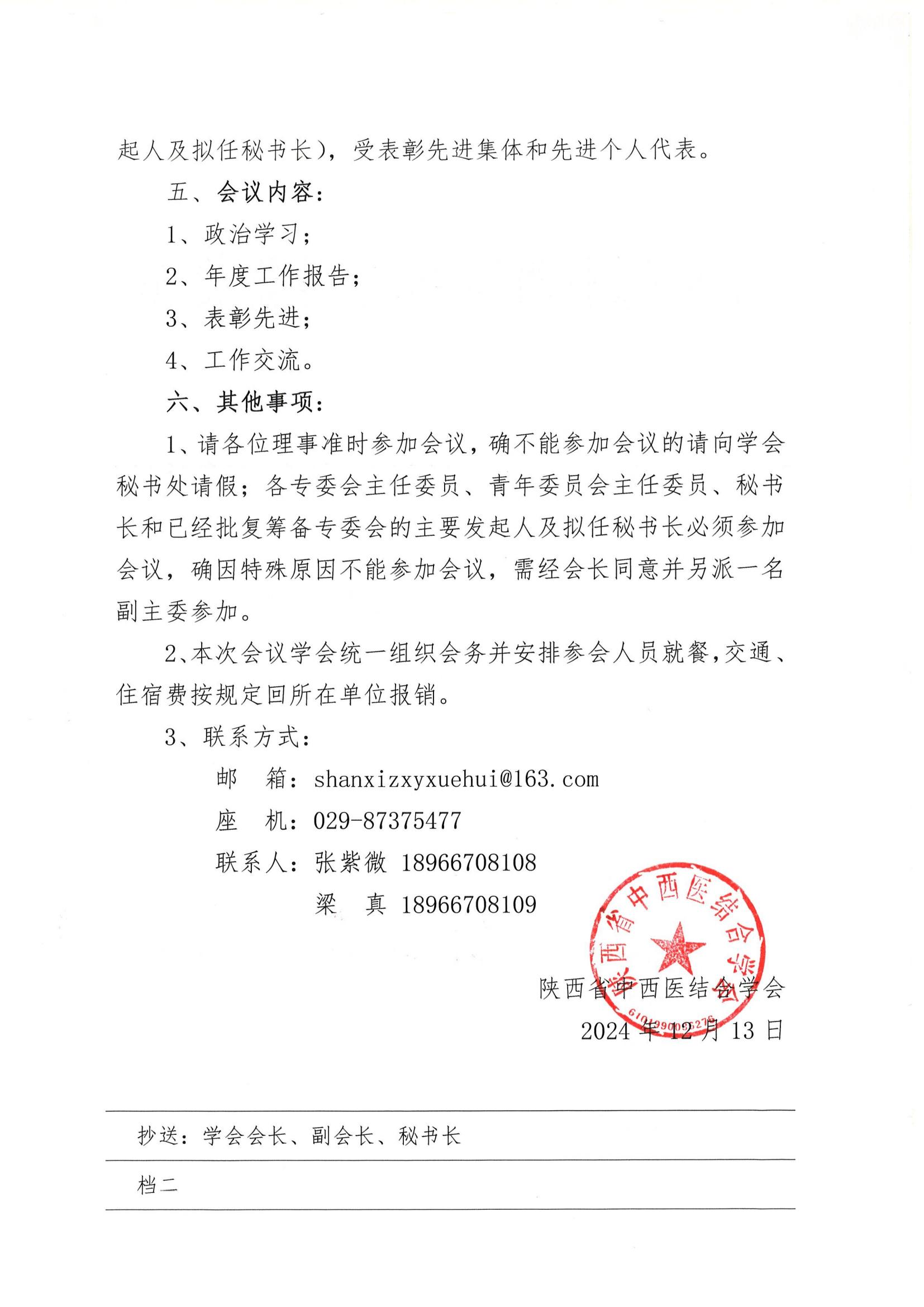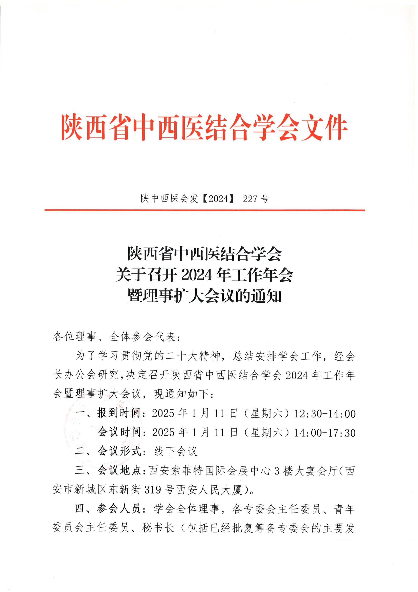 陕西省中西医结合学会关于召开2024年工作年会暨理事扩大会议的通知
