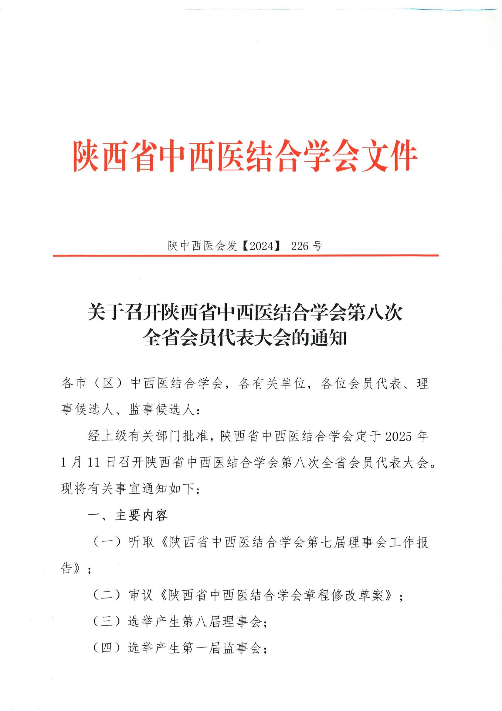 关于召开陕西省中西医结合学会第八次全省会员代表大会的通知