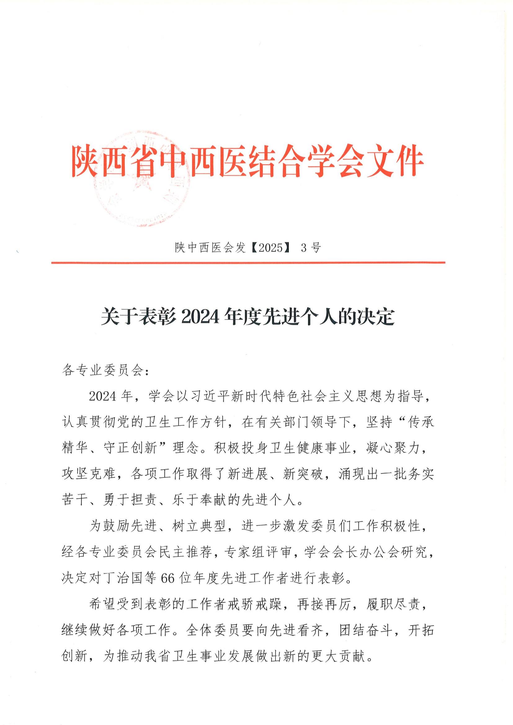 关于表彰2024年度先进个人的决定