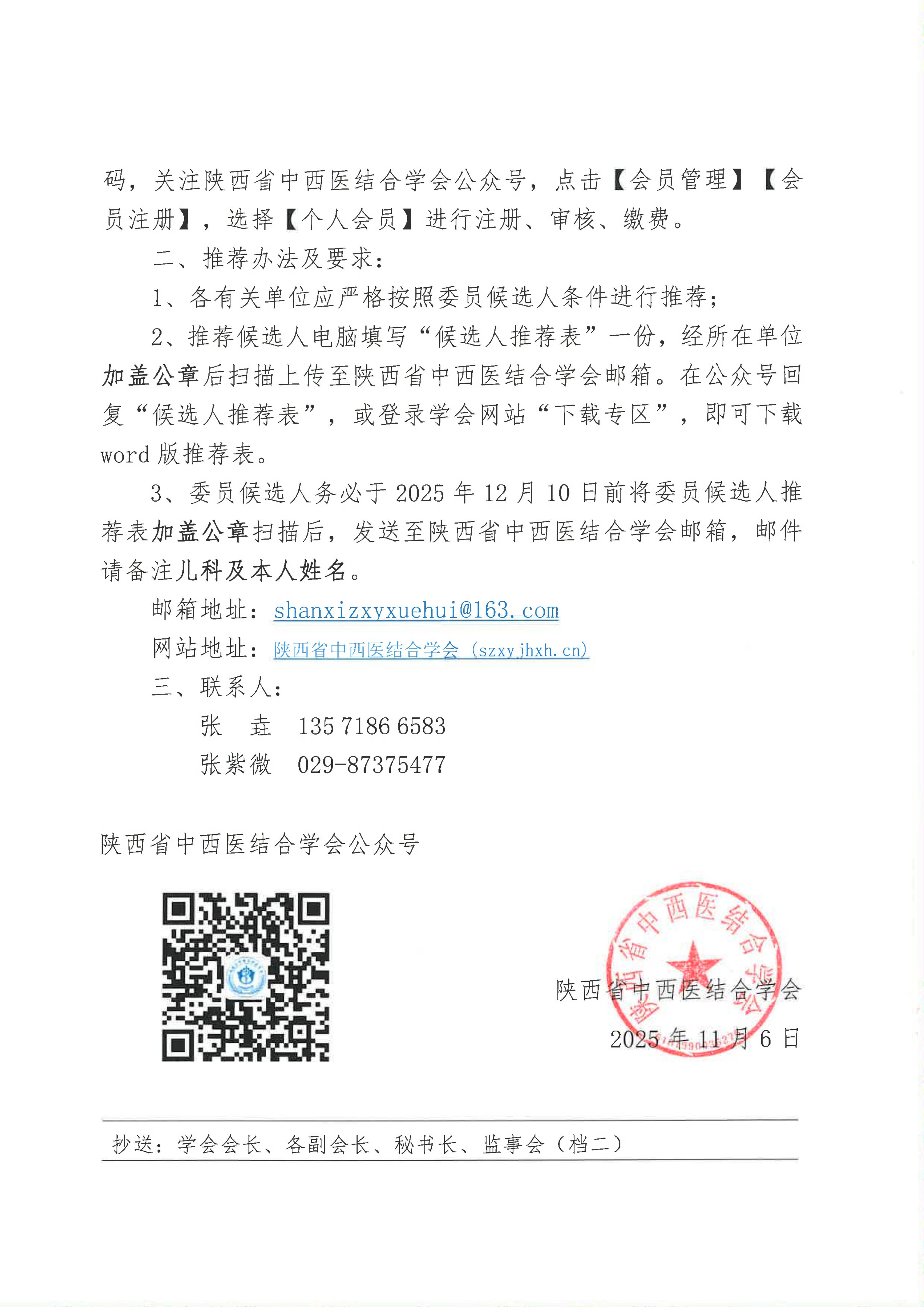 关于推荐第二届儿科专业委员会委员候选人的通知